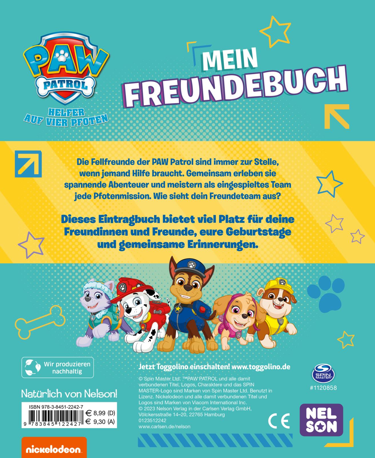 Die Fellfreunde der PAW Patrol sind immer zur Stelle, wenn jemand Hilfe braucht. Gemeinsam erleben sie spannende Abenteuer und meistern als eingespieltes Team jede Pfotenmission. Welche Freundinnen und Freunde sind in deinem Team? In diesem Freundebuch können sie sich alle mit Einträgen und Fotos verewigen - so ist dein ganzes Freunde-Team beisammen.