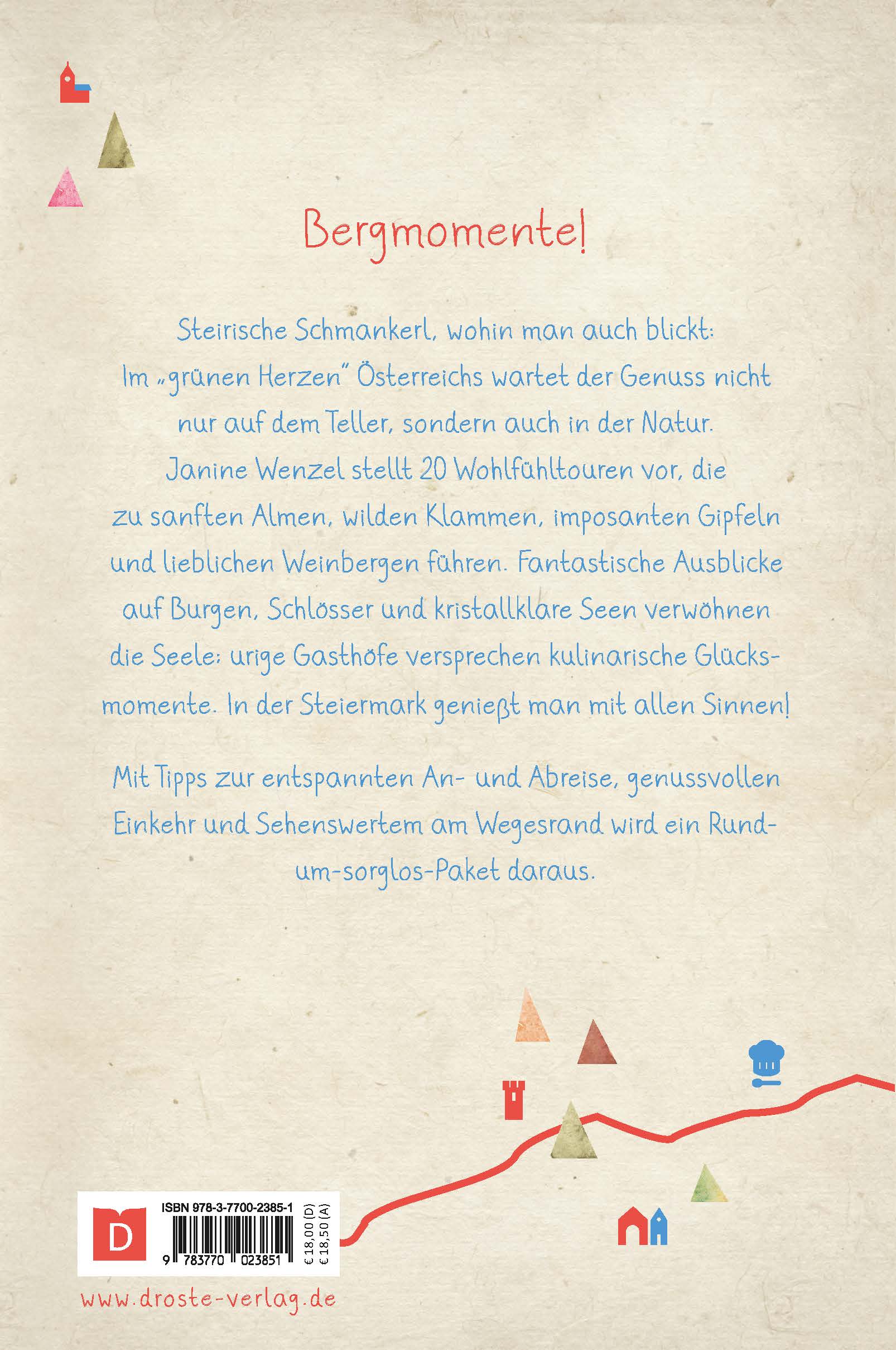 Steirische Schmankerl, wohin man auch blickt: Im "grünen Herzen" Österreichs wartet der Genuss nicht nur auf dem Teller, sondern auch in der Natur. Janine Wenzel stellt 20 Wohlfühltouren vor, die zu sanften Almen, wilden Klammen, imposanten Gipfeln und lieblichen Weinbergen führen. Fantastische Ausblicke auf Burgen, Schlösser und kristallklare Seen verwöhnen die Seele; urige Gasthöfe versprechen kulinarische Glücksmomente. In der Steiermark genießt man mit allen Sinnen!Unsere Wanderbücher bieten echte Wohlfühlwege für jede Stimmung. Mit eindrucksvollen Fotos, berührenden Texten und abwechslungsreichen Touren wird jede Wanderung zum besonderen Erlebnis. Entspannung und Inspiration garantiert - ideal auch als Geschenk!