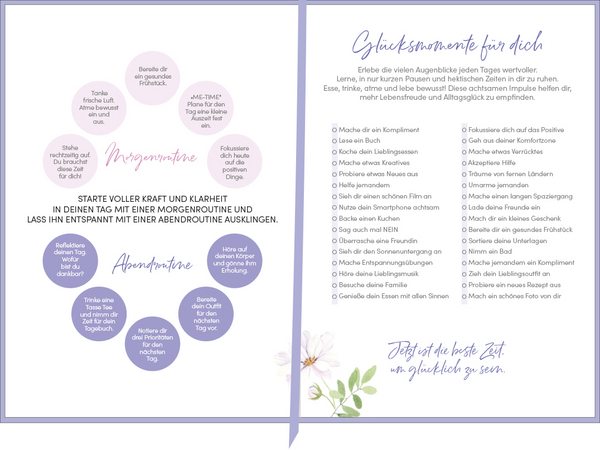 Viele Impulse für mehr Achtsamkeit und Lebensglück helfen dir dabei.