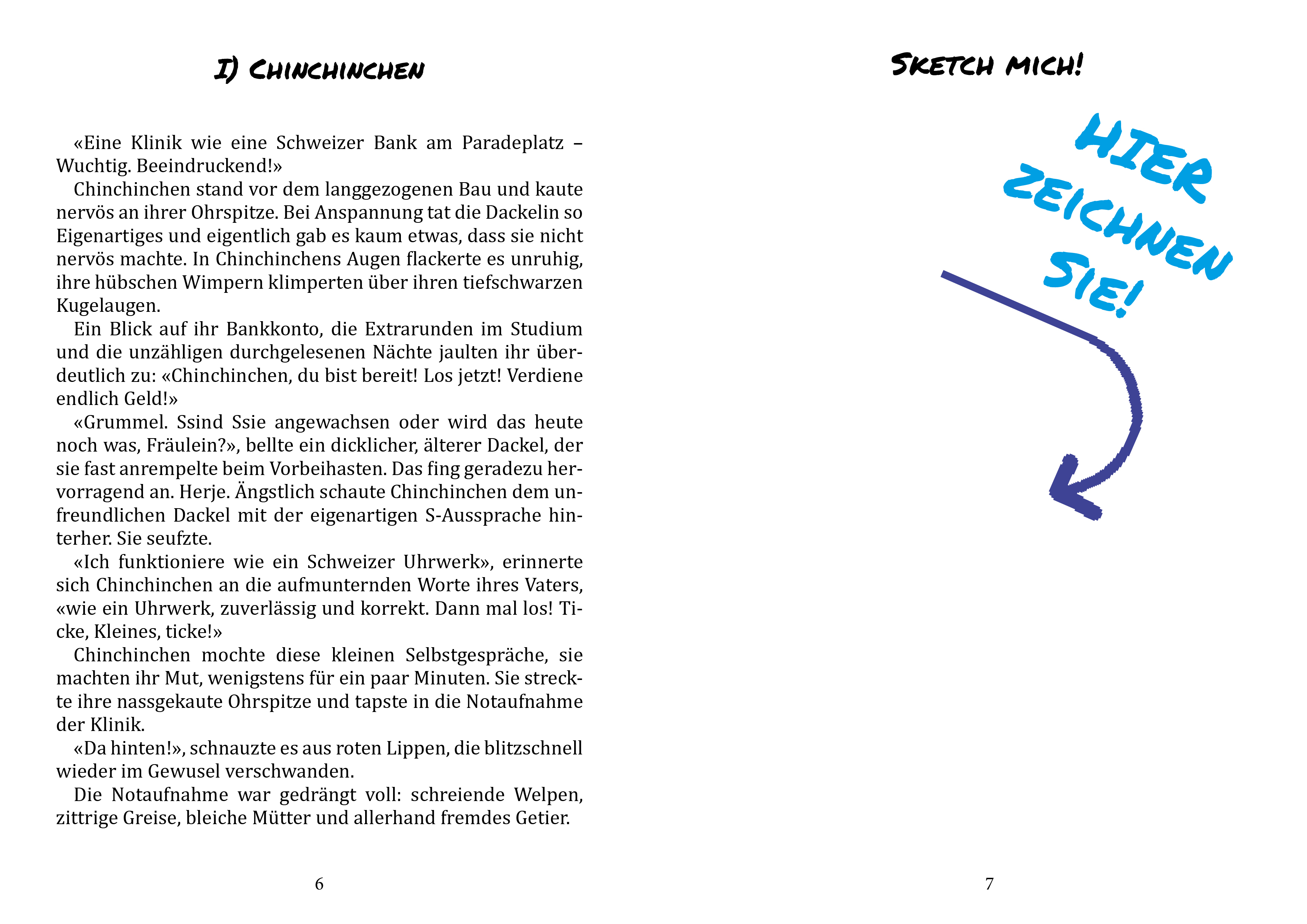 Skizzieren Sie intuitiv, gestalten Sie Ihr eigenes Malbuch und hauchen Sie den Figuren der Dackelklinik kreativ Leben ein.