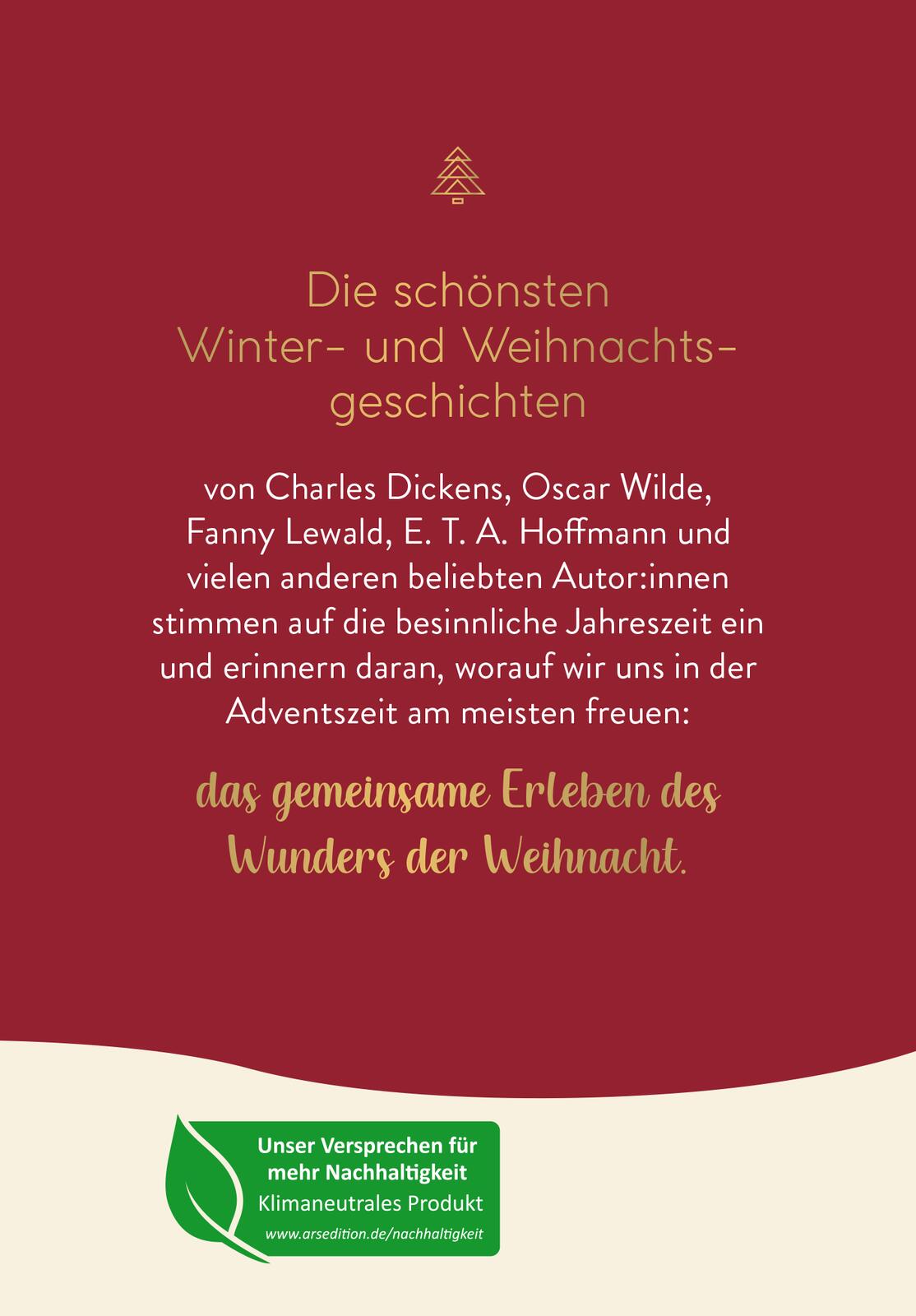 Die schönsten Winter- und Weihnachtsgeschichten für Erwachsene stimmen auf die besinnliche Jahreszeit ein und begleiten uns bis zum großen Fest. Wundervolle Kurzgeschichte von Charles Dickens, Oscar Wilde, Fanny Lewald, Luise Büchner oder E. T. A. Hoffmann erinnern uns daran, worauf wir uns im Advent am meisten freuen: das gemeinsame Erleben des Wunders der Weihnacht. Jede Seite kann zudem aufgeschnitten werden, was dem Leser das Gefühl vermittelt, ein Teil des Buches zu sein, indem man sich interaktiv in die Geschichte vertiefen kann.