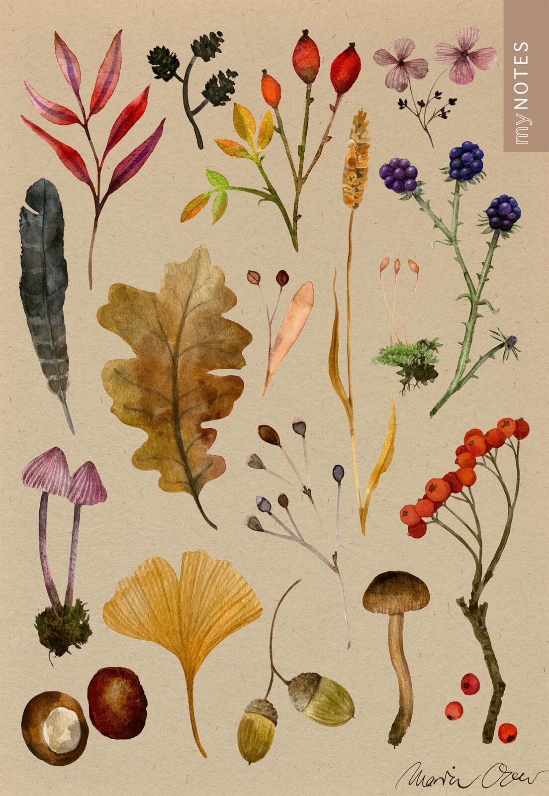 - Handgemalte Fundstücke vom Herbstspaziergang: Bunte Blätter, Kastanien, Pilze und Hagebutten zieren dieses Notizbuch und bringen dir ein bisschen Herbstmagie in dein Zuhause. Die Papeterie-Linie "Naturschätze" von Maria Over feiert all das Schöne, das du im Herbst draußen entdecken und sammeln kannst
