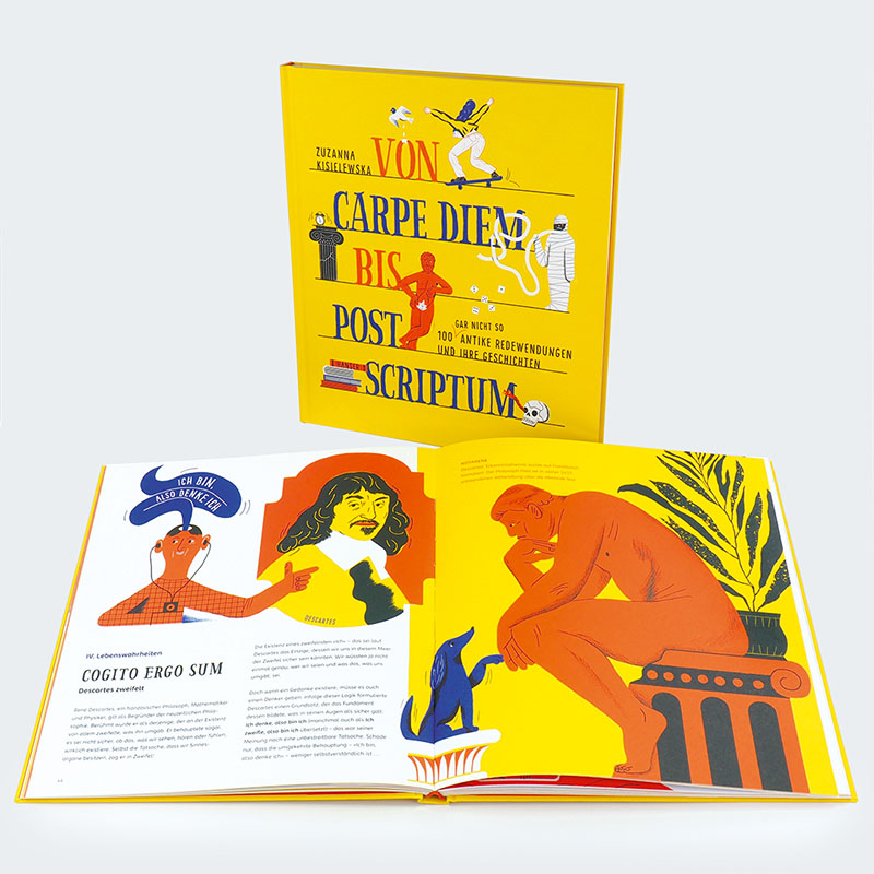 „Ein äußerst vergnügliches und zugleich lehrreiches Sachbuch über lateinische Wörter und Redewendungen. Seite für Seite lernt man, dass die tote Sprache und die Klugheit ihrer Redner mitten unter uns sind. Die großflächigen Illustrationen dazu leuchten in Orange und Rot und holen die Antike auch optisch in die Gegenwart.“ Judith Scholter, Die Zeit, 07.12.2023