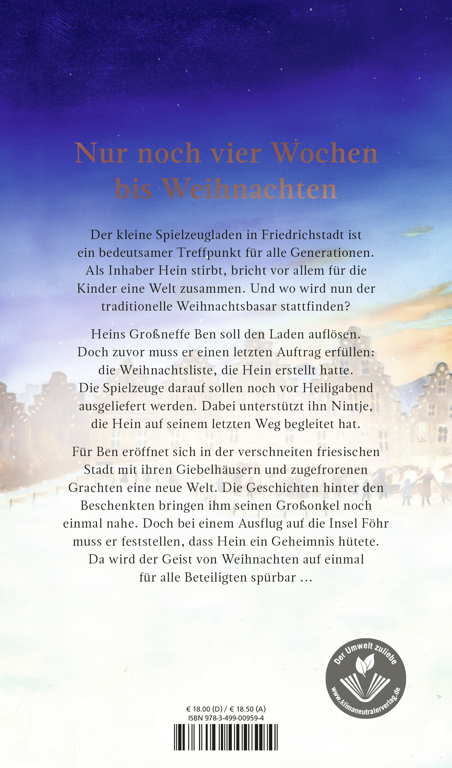 Vier Wochen vor Weihnachten. Ben Hinrichs soll den Spielzeugladen seines verstorbenen Onkels in Friedrichstadt auflösen. In der verschneiten friesischen Weite wirkt die niederländische Enklave aus dem 17. Jahrhundert wie eine Fata Morgana.