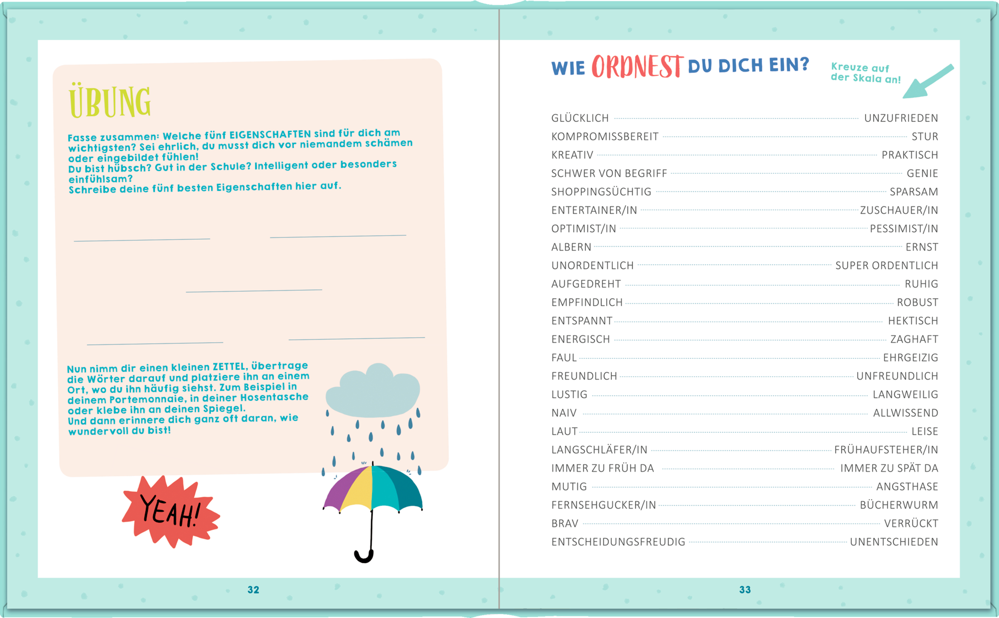 Was ist typisch für dich und was magst du besonders an dir? Wie stellst du dir deine Zukunft vor? Lerne dich anhand vieler Fragen besser kennen, klebe Fotos ein und mache kleine Übungen zur Stärkung des Selbstwertgefühls. So wirst du noch mutiger, glücklicher und selbstbewusster. Und mit dem tollen Magnetverschluss am Cover bleibt alles, was du schreibst, gut verwahrt.