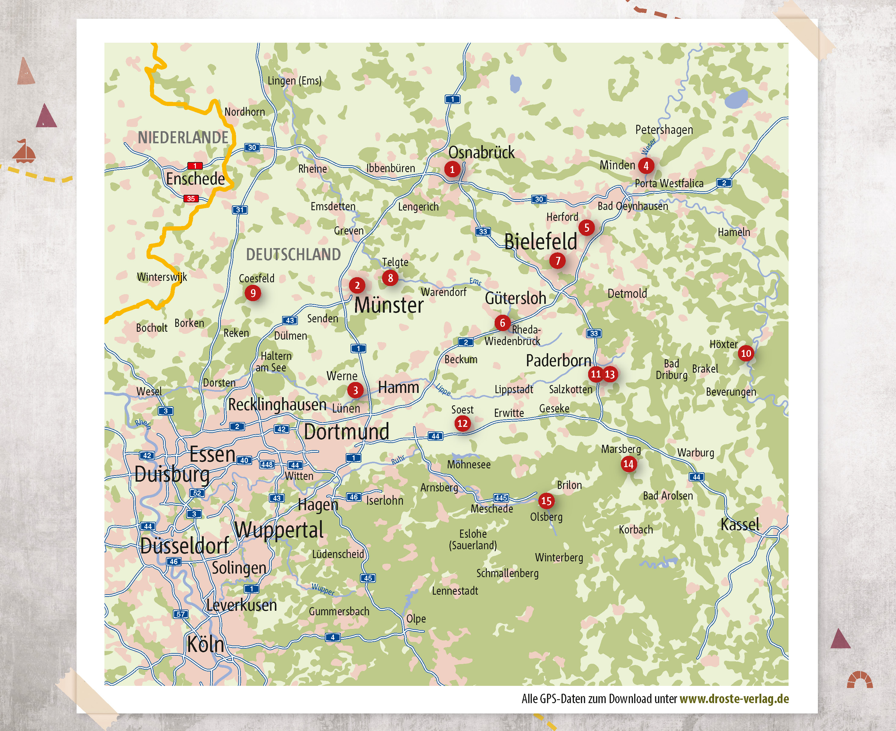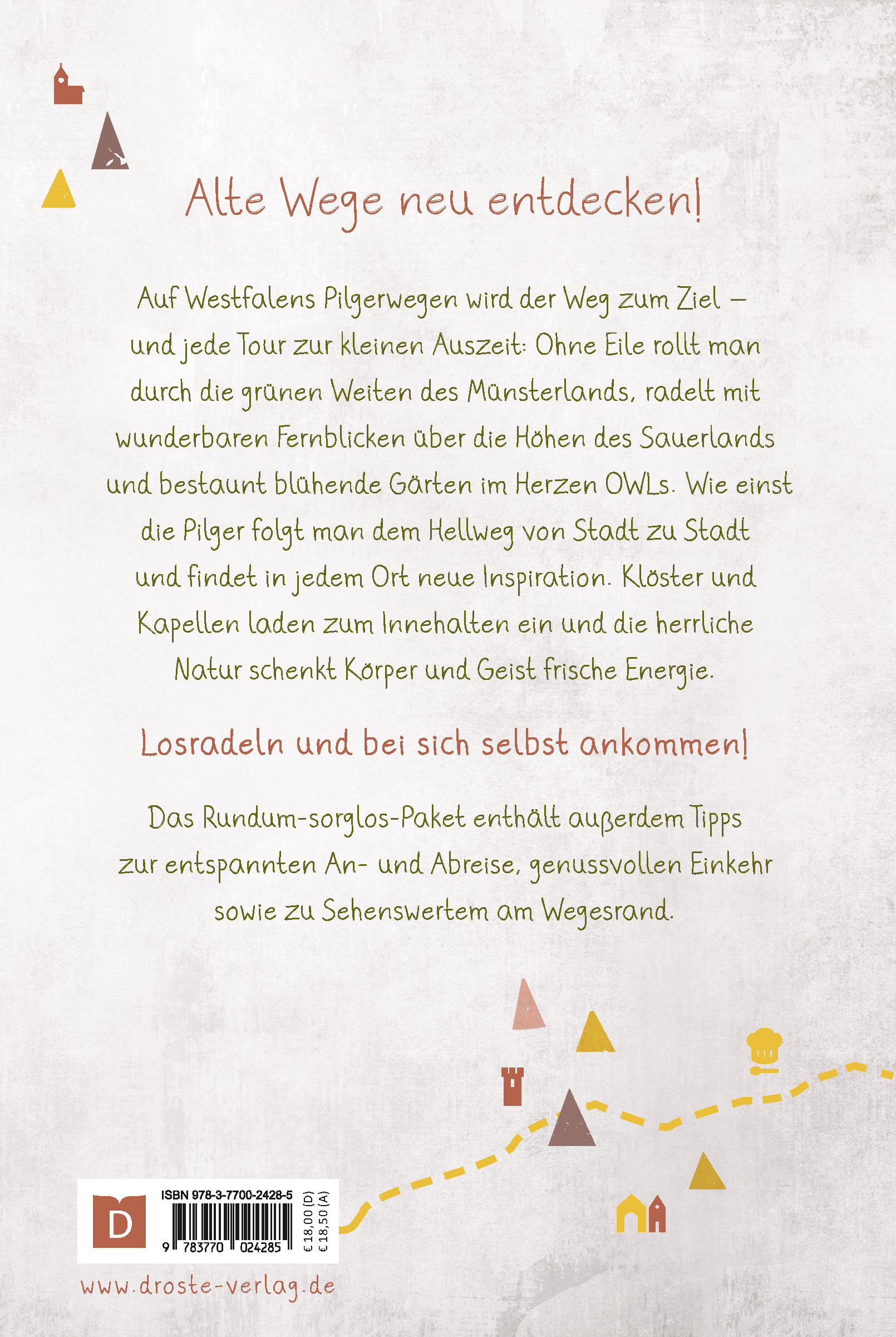 Auf Westfalens Pilgerwegen wird der Weg zum Ziel – und jede Tour zur kleinen Auszeit: Ohne Eile rollt man durch die grünen Weiten des Münsterlands, radelt mit wunderbaren Fernblicken über die Höhen des Sauerlands und bestaunt blühende Gärten im Herzen OWLs. Wie einst die Pilger folgt man dem Hellweg von Stadt zu Stadt und findet in jedem Ort neue Inspiration. Klöster und Kapellen laden zum Innehalten ein und die herrliche Natur schenkt Körper und Geist frische Energie.