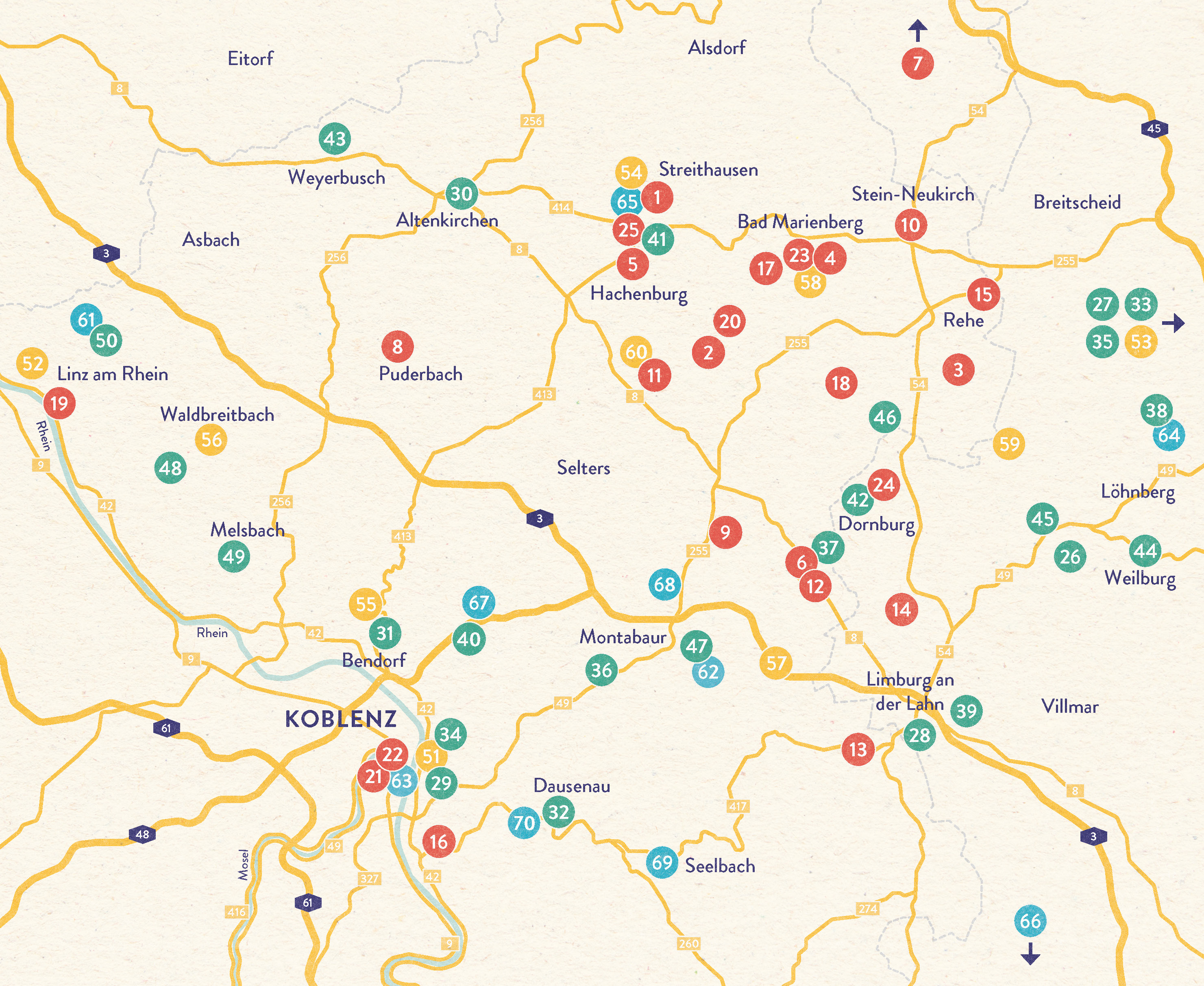 Für die Städter entlang der Lahn und des Rheins liegt das Wohlfühlparadies Westerwald nur einen Steinwurf entfernt. Ein wohltuender Gang durchs Kneippbecken, ein entspannender Malkurs im Atelier, eine ausgelassene Partie Discgolf im Park oder eine königliche Übernachtung bei der Queen: Von der kleinen Atempause für zwischendurch bis zur Auszeit für ein ganzes Wochenende ist alles dabei. So gelingt Erholung wirklich!