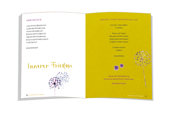 "Wenn jeder von uns jeden Tag ein Samenkorn derMenschlichkeit legt, wird die Erde für alle wieder hoffnungsgrün" (Maria Sassin). Diese Worte entzünden kleine Lichter des Friedens und schenken Hoffnung auf eine menschlichere Zukunft.Mit Texten von Gisela Baltes, Schalom Ben-Chorin, Max Feigenwinter, Mahatma Gandhi, Albrecht Gralle, Frank Greubel, Eva-Maria Leiber, Monica Lockowandt, Alexandra Quiram, Maria Sassin, Anne Steinwart u.a.
