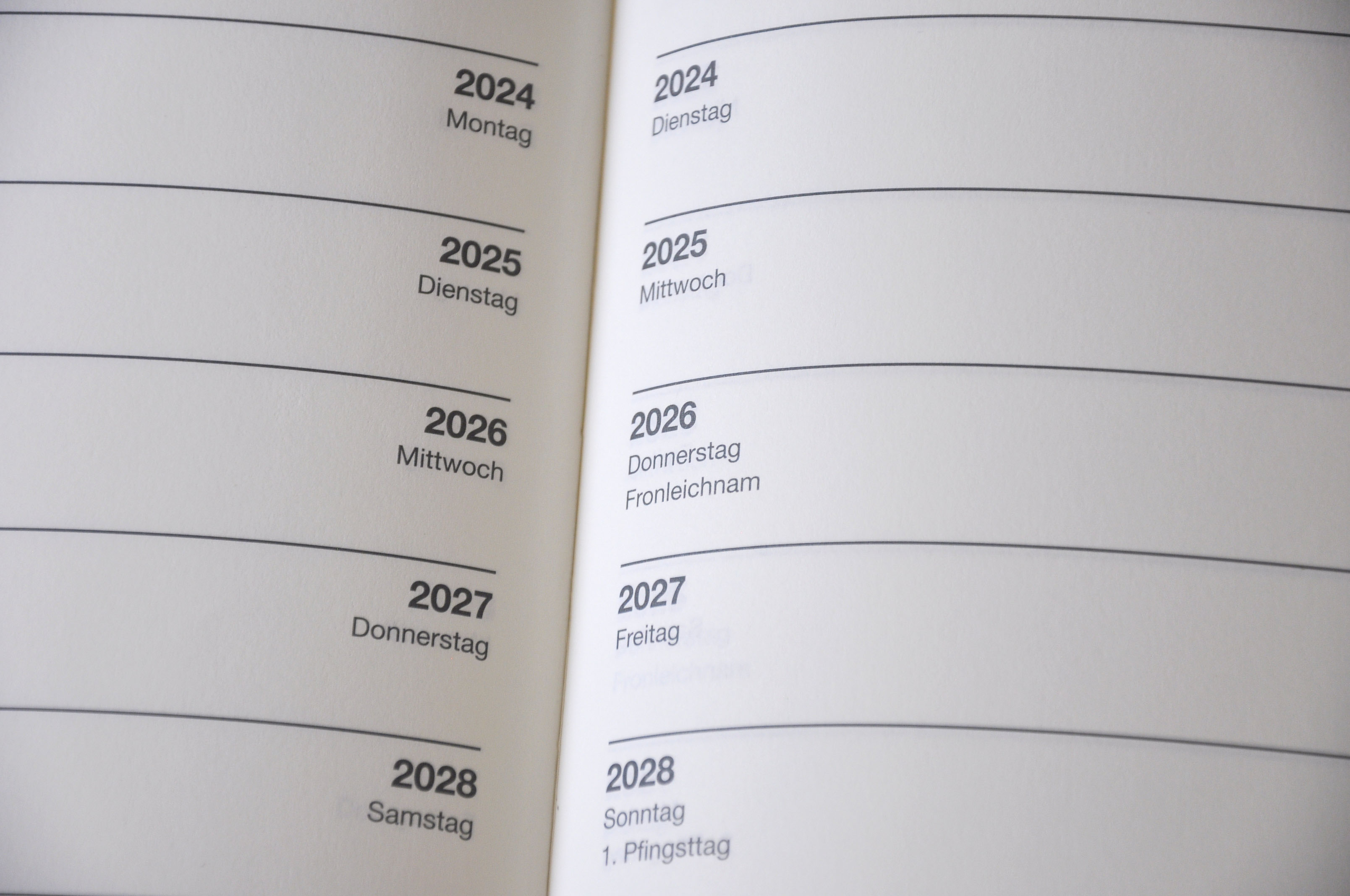 Ein Tag in 10 Jahren! Das Kalendarium im Jahresweiser beinhaltet nicht nur Datum und Jahreszahlen sondern