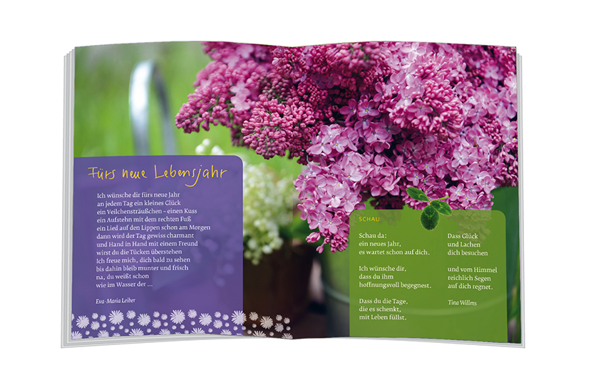 Zum Geburtstag Glück und Segen wünschen: eine frohgestimmte Einladung, die Glücksmomente des Lebens zu ergreifen und zu genießen.Mit Texten Doris Bewernitz, Rainer Haak, Eva Maria Leiber, Cornelia Elke Schray, Tina Wilms und anderen.