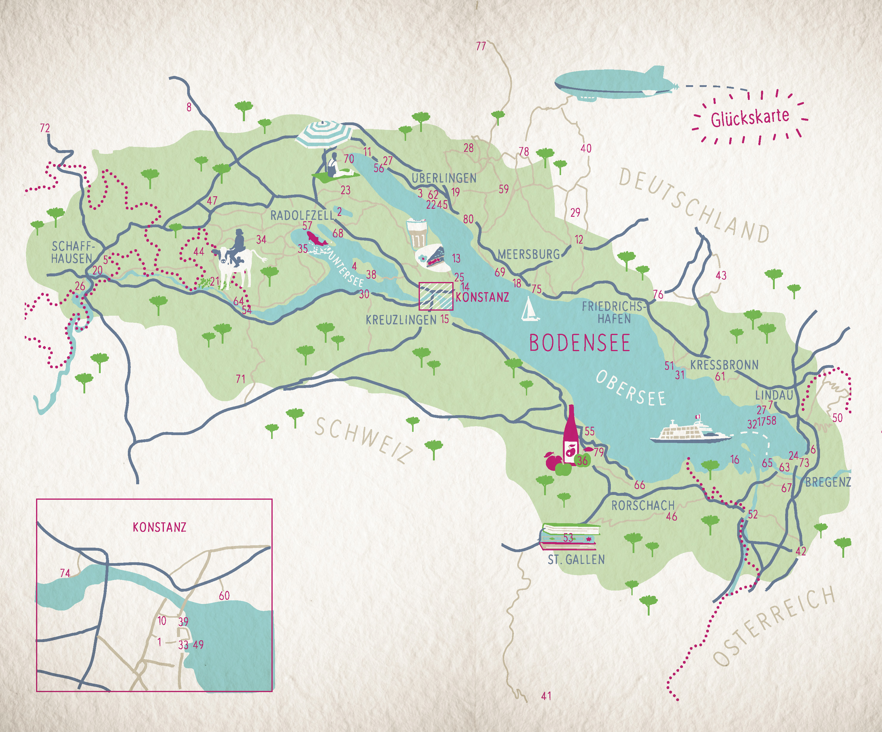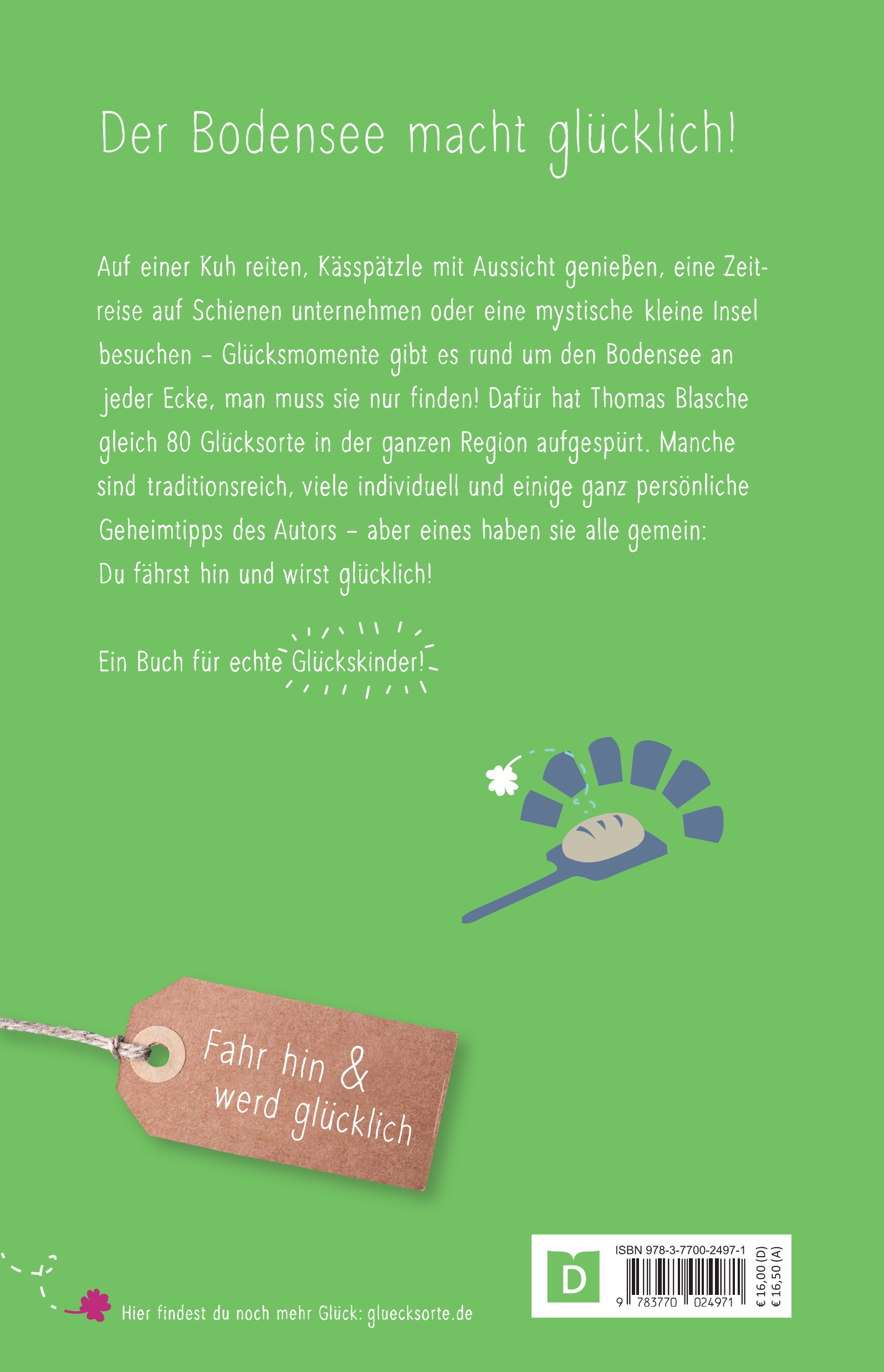 Auf einer Kuh reiten, frisches Brot vom besten Bäcker Deutschlands probieren, eine Zeitreise auf Schienen unternehmen oder eine mystische kleine Insel besuchen - Glücksmomente gibt es rund um den Bodensee an jeder Ecke, man muss sie nur finden! Dafür hat Thomas Blasche gleich 80 Glücksorte in der ganzen Region aufgespürt. Manche sind traditionsreich, viele individuell und einige ganz persönliche Geheimtipps des Autors - aber eines haben sie alle gemein: Du fährst hin und wirst glücklich!