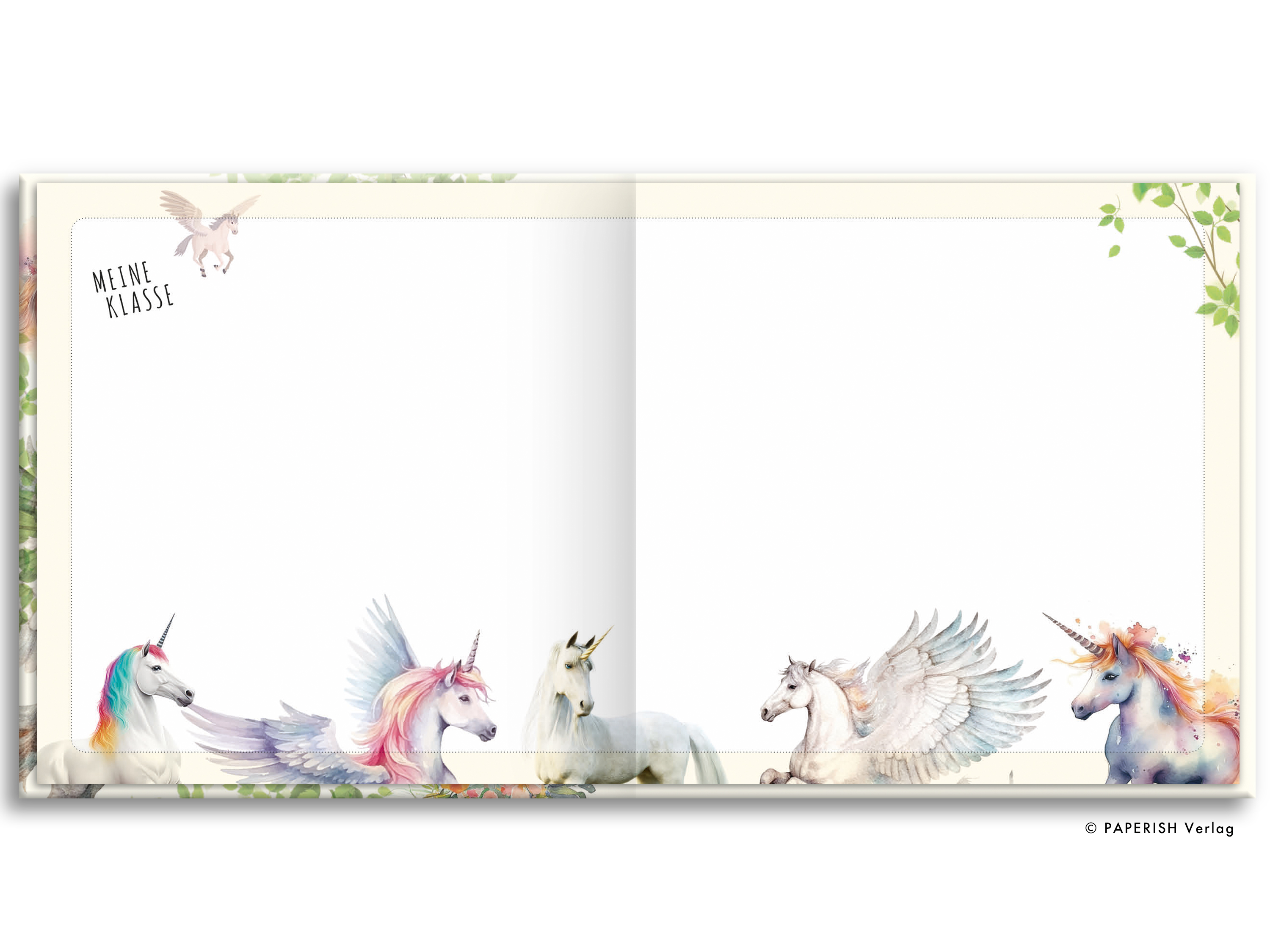 Ein ganz besonderes Freundebuch für Einhornfreunde und ihre ersten Begleiter und Begleiterinnen in der Schulzeit. Wundervolle Einhörner führen durch ein einzigartiges Freundealbum, indem jeder auf besondere Weise eingeladen wird, sich zu verewigen damit die ersten Freundschaften im Leben nicht vergessen werden und später wieder aufleben können. Auf 72 Seiten kann man reichlich Fragen beantworten, ankreuzen, ausmalen und mitmachen um auf natürliche Weise die soziale Bindung und persönliche Kreativität zu fördern. Damit das Freundschaftsbuch auch lange Freude bereitet, sind die Seiten besonders stabil und der Einband des Buches fest und folienkaschiert. Und für das gewisse Etwas gibt es eine wunderschöne Goldfolienprägung auf dem Cover des Buches, so kann jeder erkennen dass es sich um ein einzigartiges, persönliches Erinnerungsstück handelt. Ein besonderes Geschenk für die Zeit in der Schule und die ersten Geburtstage mit Freunden!