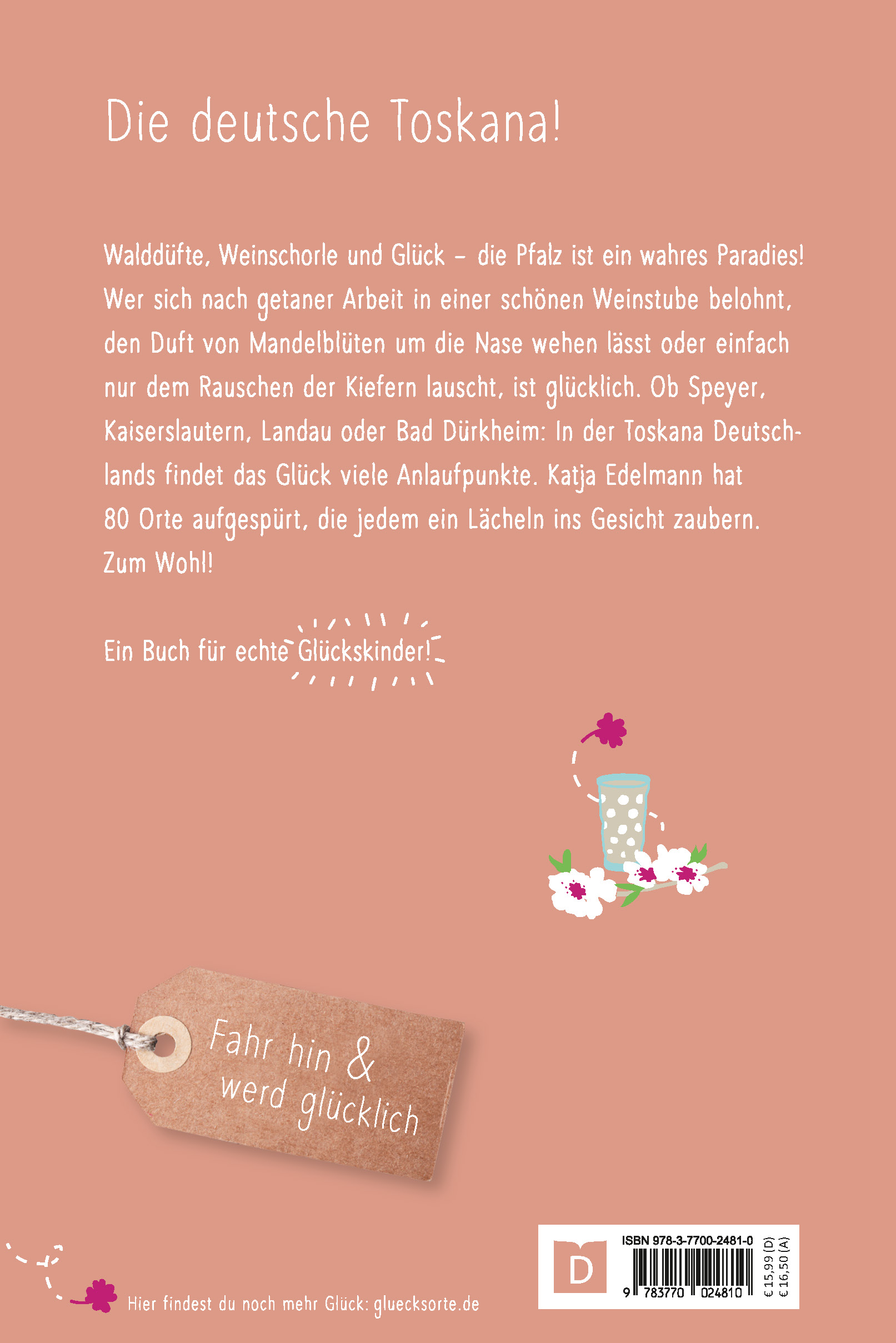 Die deutsche Toskana! Walddüfte, Weinschorle und Glück - die Pfalz ist ein wahres Paradies! Wer sich nach getaner Arbeit in einer schönen Weinstube belohnt, den Duft von Mandelblüten um die Nase wehen lässt oder einfach nur dem Rauschen der Kiefern lauscht, ist glücklich. Ob Speyer, Kaiserslautern, Landau oder Bad Dürkheim: In der Toskana Deutschlands findet das Glück viele Anlaufpunkte. Katja Edelmann hat 80 Orte aufgespürt, die jedem ein Lächeln ins Gesicht zaubern! Ein Buch für echte Glückskinder!