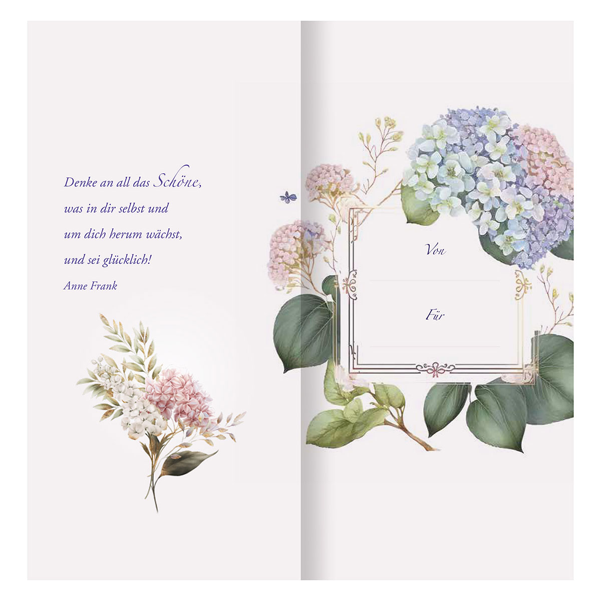 Wie wohltuend, ist es doch Freunden und Kollegen gute Wünsche zu überbringen, die mit Rat und Tat im Alltag zur Seite stehen. Mit diesem bezaubernden Geschenkheft mit passendem Umschlag können Sie Ihrer Dankbarkeit und Zuneigung stilvoll Ausdruck verleihen. Mit sorgfältig ausgewählten Aphorismen von beliebten Autorinnen und Autoren wie Anne Frank, Sophie Scholl, Wilhelm Raabe u.a. überreichen Sie Ihre Grüße zum Geburtstag oder Jubiläum. Ergänzt werden die Worte von stimmungsvollen Aquarellen von Hortensien, die Blume der Anmut und Schönheit. Lassen Sie Ihr Gegenüber durch dieses außergewöhnliche Geschenkheft wissen: Schön, dass es dich gibt! Geben Sie ein Stück Freude weiter, denn Komplimente und Zuspruch tun doch einfach gut.-Illustrationen farbenprächtiger Hortensienblüten-Lebensweisheiten bekannter Autoren -im eleganten Lang-Format mit passendem Umschlag zum Versenden