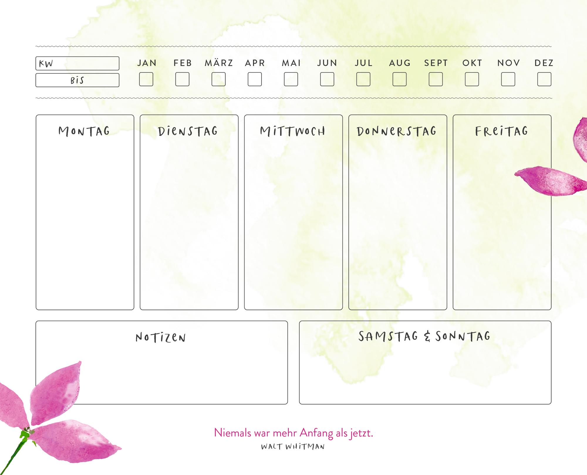 - mit Platz für handschriftliche Notizen, Termine und kleine wie große Pläne