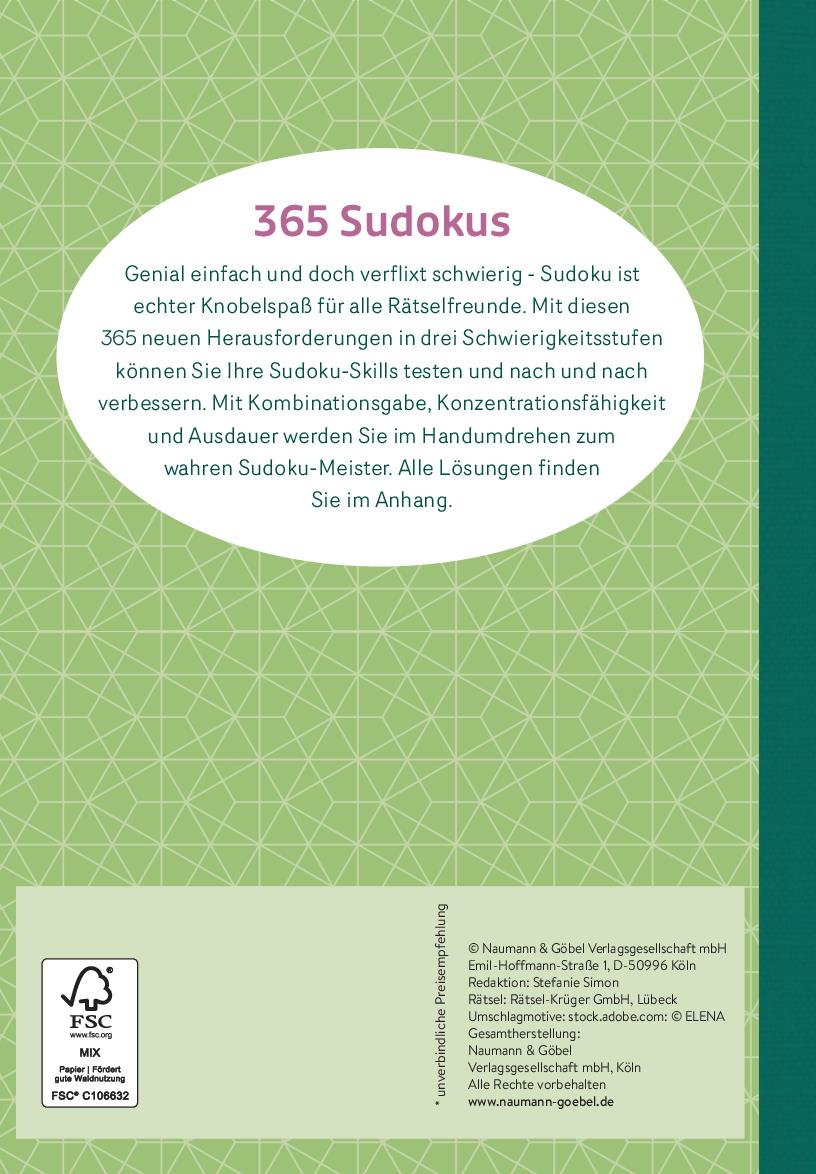 - 365 Sudokus in 3 Schwierigkeitsstufen von leicht bis knifflig
