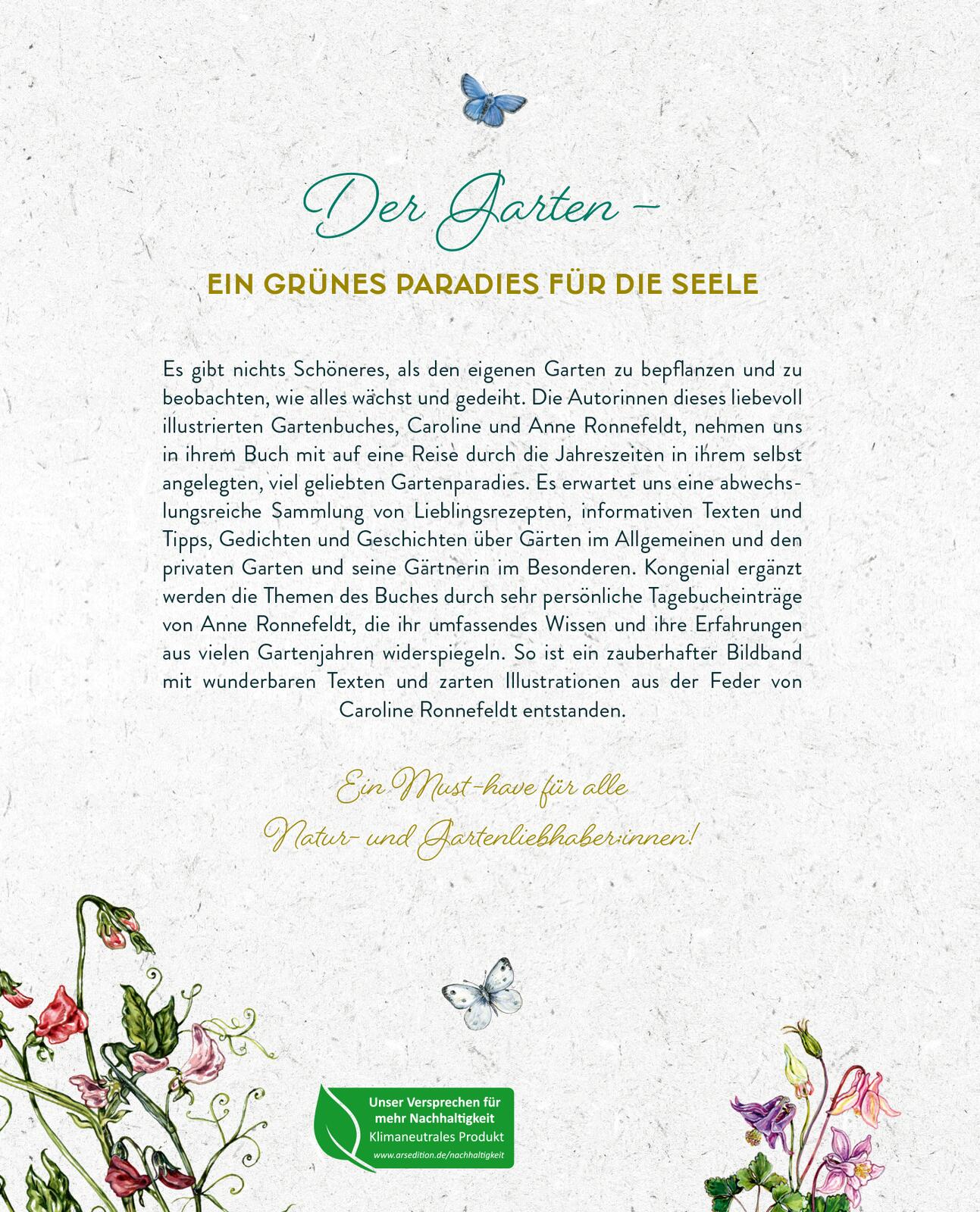 - Für Gartenliebhaber:innen: Mit schönen Gedichten und Geschichten und spannenden Ausschnitten aus dem Gartentagebuch von Anna Ronnefeldt
