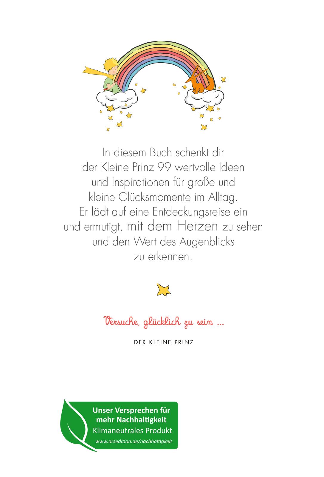"Die schönste Freude erlebt man immer da, wo man sie am wenigsten erwartet", schrieb Antoine de Saint-Exupéry, der Autor des Weltbestsellers "Der Kleine Prinz". Glücksmomente im Alltag kann man sich auch ganz einfach selbst schaffen. In diesem Buch schenkt dir der Kleine Prinz wertvolle Ideen und Inspirationen zum Glücklichsein. Ob es eine Liste ist der Dinge, für die du dankbar bist oder der Genuss eines wunderschönen Sonnenuntergangs - es braucht nicht viel, um glücklich zu sein. Hier findest du 99 inspirierende Anregungen für kleine und große Glücksmomente im Alltag kombiniert mit passenden Zitaten vom kleinen Prinzen und seinen weltbekannten Illustrationen. Samt wunderschönen neuen Zeichnungen ist diese Mitmachbuch ein tolles Geschenk für alle Fans des kleinen Prinzen!