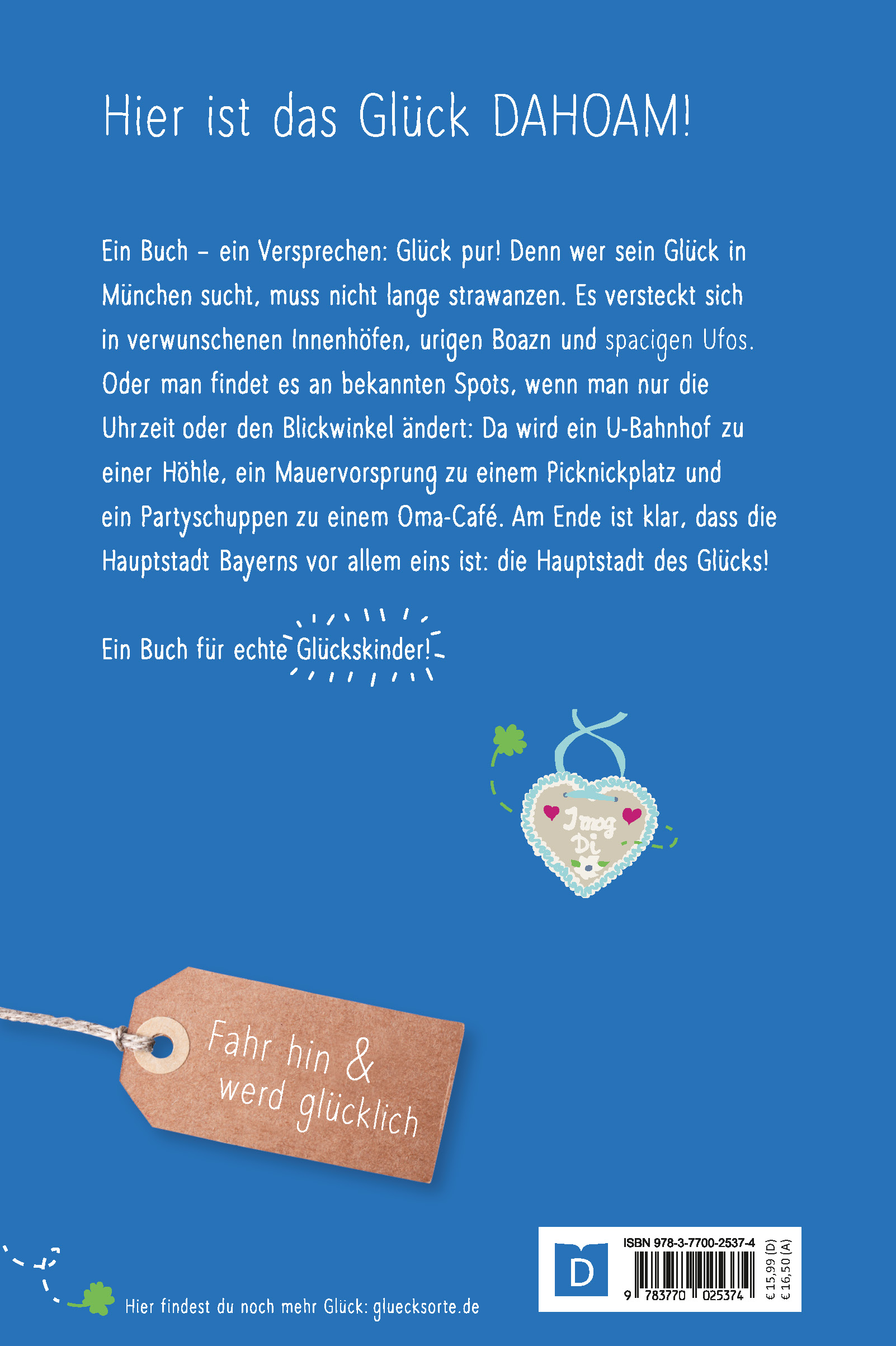 Hier ist das Glück dahoam! Ein Buch – ein Versprechen: Glück pur! Denn wer sein Glück in München sucht, muss nicht lange strawanzen. Es versteckt sich in verwunschenen Innenhöfen, urigen Boazn und kuscheligen Ladenkinos. Oder man findet es an bekannten Spots, wenn man nur die Uhrzeit oder den Blickwinkel ändert: Da wird ein U-Bahnhof zu einer Höhle, ein Mauervorsprung zu einem Picknickplatz und ein Partyschuppen zu einem Oma-Café. Am Ende ist klar, dass die Hauptstadt Bayerns vor allem eins ist: Hauptstadt des Glücks! Ein Buch für echte Glückskinder!