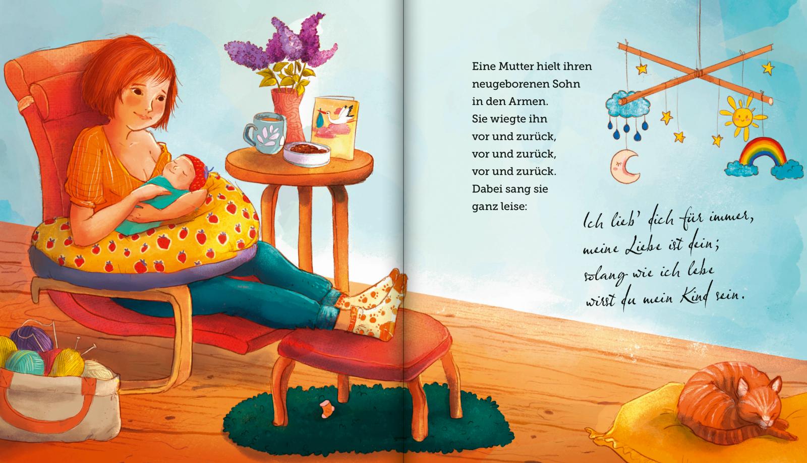 Die Liebe einer Mutter zu ihrem Kind ist das zeitlose Thema dieser wunderschönen Geschichte von Robert Munsch, die sich weltweit bereits millionenfach verkauft hat. Die Neuausgabe dieses Bestsellers gibt der rührenden Erzählung mit ebenso liebe- wie humorvollen Zeichnungen einen neuen Anstrich. Eine Hommage an die Mutterliebe und den Kreis des Lebens.