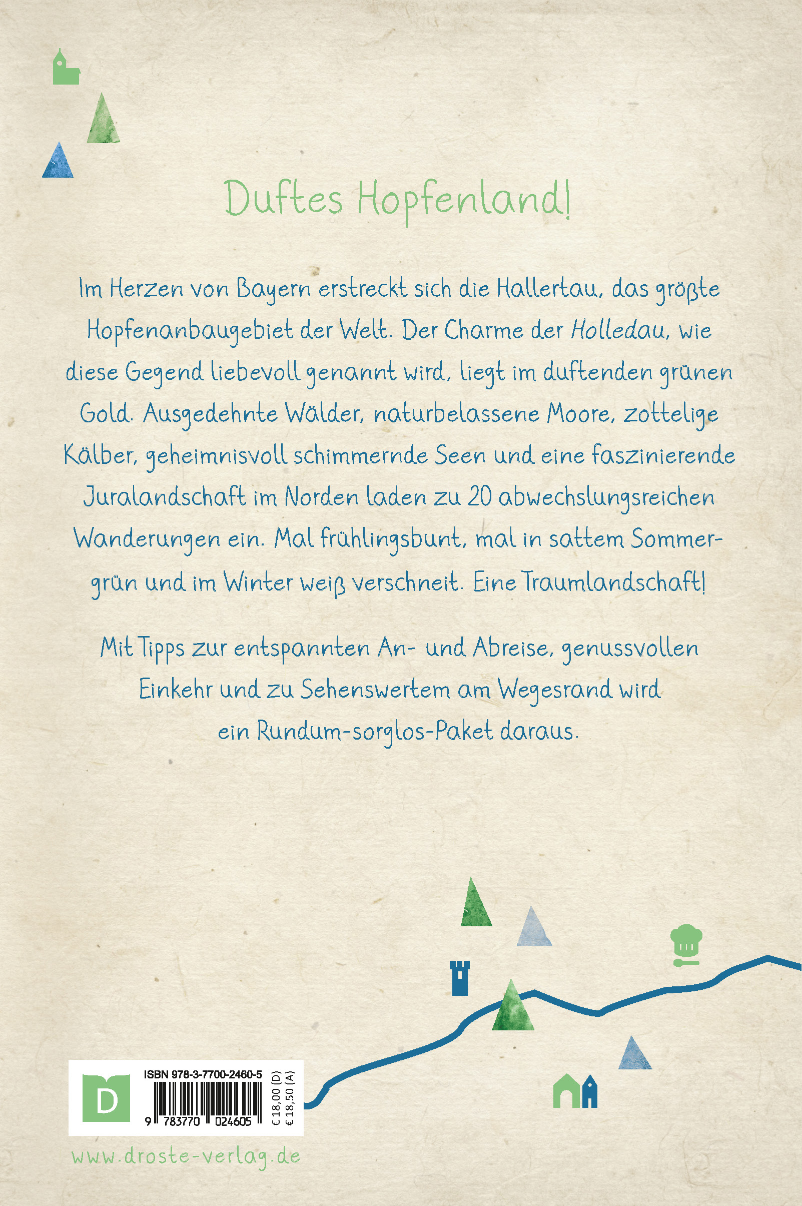 Im Herzen von Bayern erstreckt sich die Hallertau, das größte Hopfenanbaugebiet der Welt. Der Charme der Holledau, wie diese Gegend liebevoll genannt wird, liegt im duftenden grünen Gold. Ausgedehnte Wälder, naturbelassene Moore, zottelige Kälber, geheimnisvoll schimmernde Seen und eine faszinierende Juralandschaft im Norden laden zu 20 abwechslungsreichen Wanderungen ein. Mal frühlingsbunt, mal in sattem Sommergrün und im Winter weiß verschneit. Eine Traumlandschaft!