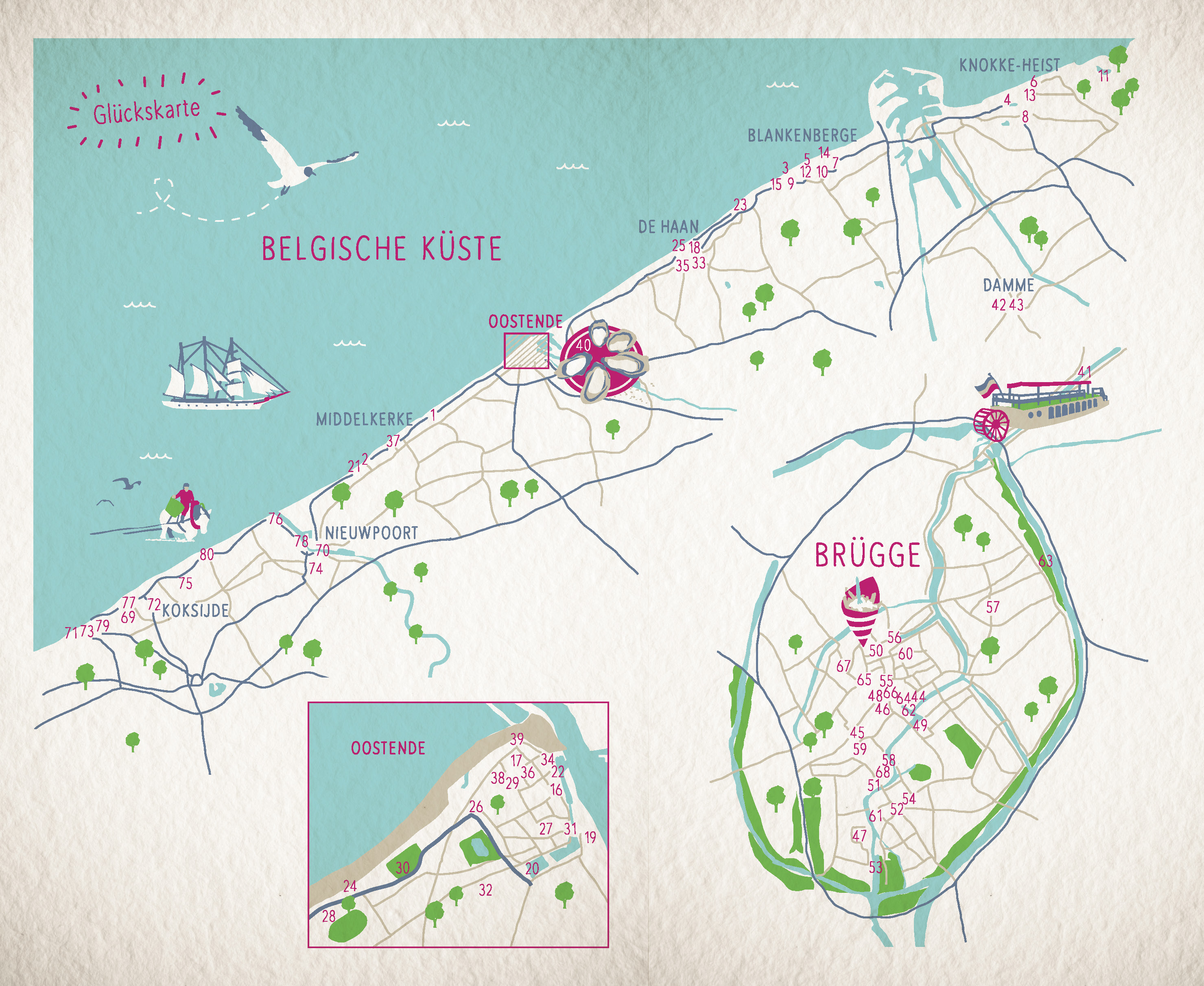 Herzlich willkommen an der belgischen Küste! Die Vielfalt der Eindrücke auf diesen nur 68 Kilometern ist überwältigend. Hier kann man naturbelassene Strände genießen, entlang moderner Promenaden flanieren oder auf den Spuren der noblen Sommerfrischler der Belle Époque lustwandeln. Auch eine Zeitreise in der reichsten Stadt des Mittelalters ist möglich, wenn man die unglaublich gut erhaltene Innenstadt von Brügge durchstreift. 80 ausgewählte Tipps weisen den Weg zum Glück!