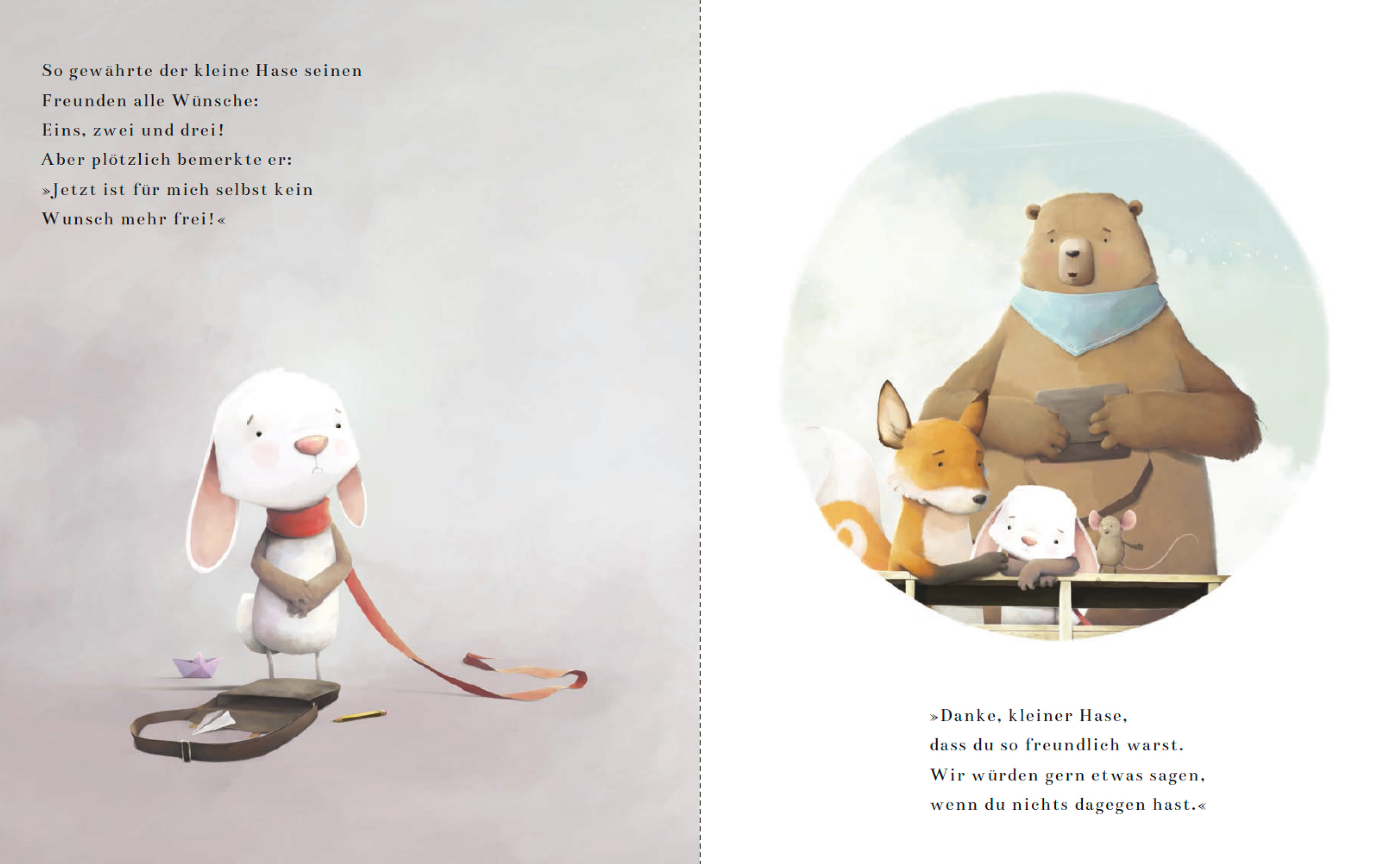 "In dieser zauberhaften Bilderbuchgeschichte sind einmal nicht die Märchenfee oder ein Flaschengeist am Start, sondern … gute Freunde! Und auch, wenn die dem kleinen Hasen nur ihre eigenen Wünsche nennen können: Sich etwas zu wünschen bekommt eine ganz besondere Bedeutung, wenn man dabei auch an andere denkt. Die Geschichte ist sehr schön vorzulesen und wird von wunderbaren Bildern ergänzt, die zum Nachdenken, Erzählen, Träumen und Teilen anregen!"