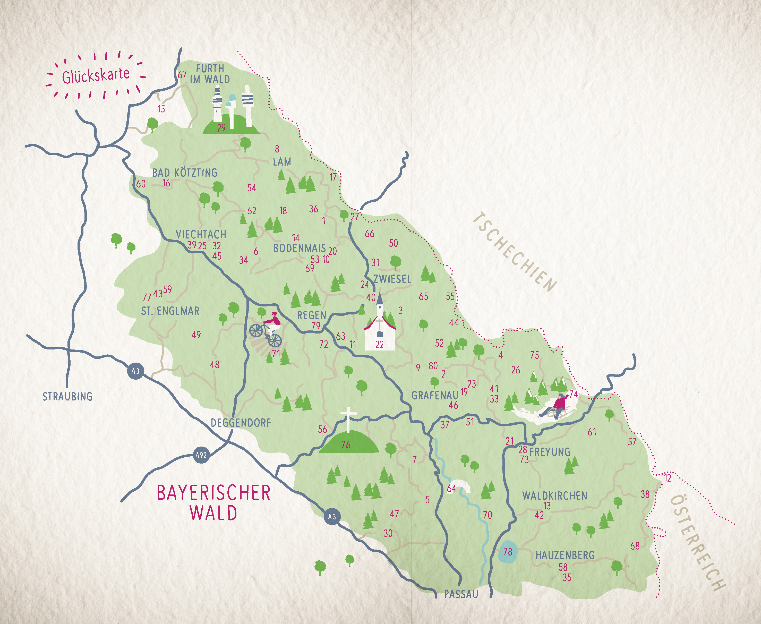 Über den Wolken schweben, zu knorrigen Märchenbäumen wandern, hinter die Kulissen der ältesten Glashütte Deutschlands blicken, schleichende Luchse aus nächster Nähe beobachten oder mit dem Zug durch Bayerisch-Kanada düsen: Glückserlebnisse sind im Bayerischen Wald überall zu finden – man muss nur wissen, wo! Gregor Wolf hat 80 besondere Orte aufgespürt und verrät seine ganz persönlichen Geheimtipps mit Glücksgarantie.