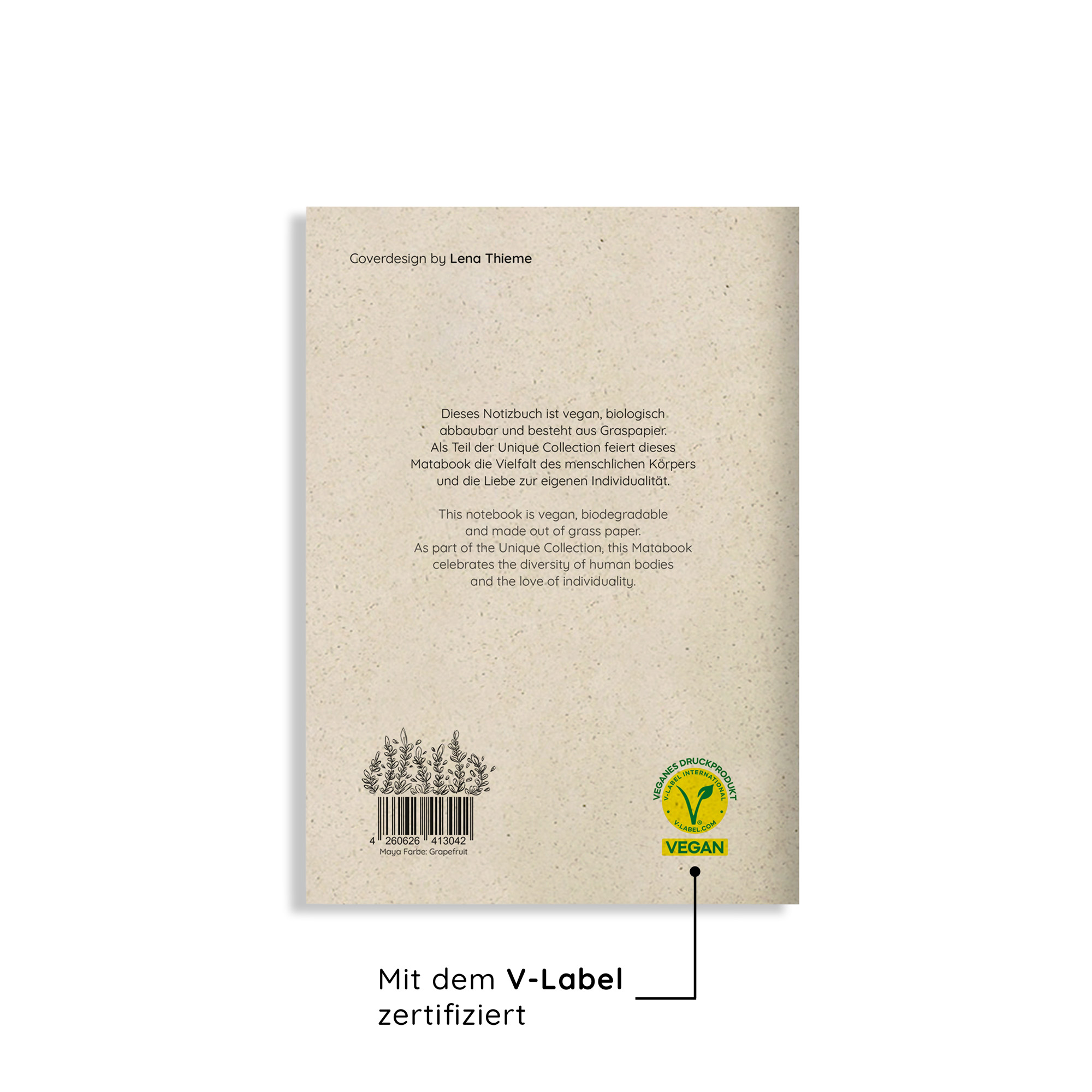 Illustriert von Lena ThiemeUnverblümt du selbst sein - unverschämt stolz darauf.Als Teil der Unique Collection feiert dieses Notizbuch die Vielfalt des menschlichen Körpers und die Liebe zur eigenen Individualität. Ob groß oder klein, rasiert oder nicht, beschnitten oder nicht, gerade oder krumm, dunkel oder hell, transgender oder cisgender, intersexuell oder anatomisch typisch - alle Penisse sind wundervoll, so wie sie sind!Die ersten V-Label-zertifizierten Bücher Deutschlands!"Maya" bedeutet in Sanskrit, der heiligen indischen Sprache "mit mir", "durch mich" bzw. "von mir". Unser Notizheft für dich, dem du durch deine Gedanken, Ideen, Träume und Erinnerungen Bedeutung verleihst.Verwendbar als umweltfreundliches Notizbuch, Skizzenbuch, Achtsamkeitstagebuch, Reisetagebuch, Dankbarkeitstagebuch, Bullet Journal (Planer) oder Tagebuch. Perfekt geeignet als nachhaltiges Geschenk für dich und deine Liebsten.Auf dem Graspapier können alle Stifte und Farben verwendet werden, die du dir vorstellen kannst. Dank seiner natürlichen Robustheit franst Tinte nicht aus und drückt auch nicht auf der Rückseite durch. Allerdings solltest du darauf achten, frische Farbe antrocknen zu lassen, bevor du das Buch schließt oder die Seite umblätterst. Technische Angaben- Format A5- Softcover- 40 Seiten blanko- 90 g/m² Graspapier (bis zu 50 % Grasfaseranteil, Frischfaseranteil aus FSC-zertifizierten Wäldern)- Steppstichheftung- Öko-Druckfarben- Mit dem V-Label als vegan ausgezeichnetIt's vegan. That's dope! - matabooks
