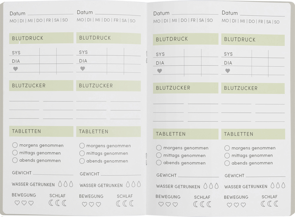 | Schlagworte | Dauerkalender • Eintragen • Fitness • Heft • jahresunabhängig • Körper • Krankeiten • Medikamente • Medizin • Selbsthilfe • Selbstliebe • Symptome • Überblick |