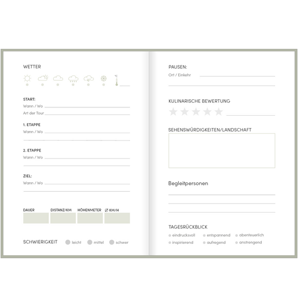 | Schlagworte | Ausflüge • Auszeit • Begleiter • Erholung • Erinnerungen • Ferien • Geschenkbuch • Logbuch • Natur • Radfahrer • Radtouren • Reisen • Reisetagebuch • Tagebuch |