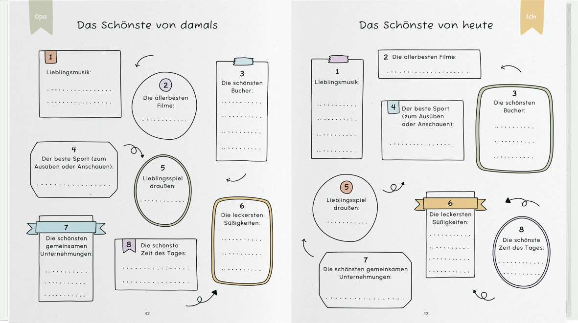 - Fördert Kreativität und Kommunikation: Durch Zeichenaufgaben, originelle Fragen und Quizaufgaben kommen Großeltern und Kinder ins Gespräch