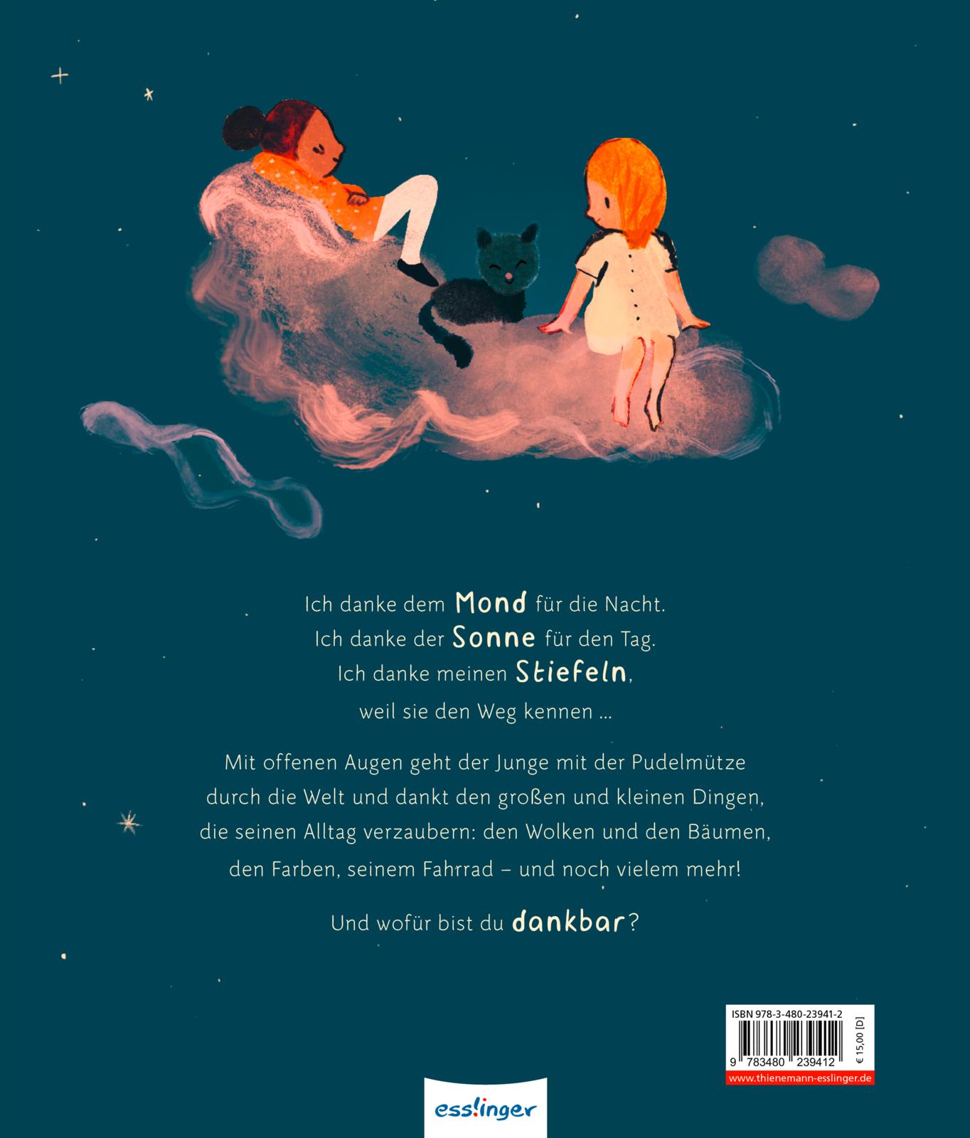 "Ich danke dem Tyrannosaurus, weil es das längste Wort ist, das ich kenne!" Mit seinem offenen Blick für die Welt dankt der Junge mit der Pudelmütze all den kleinen Dingen, die selbstverständlich scheinen, das Leben jedoch besonders machen. Da ist der Mond und die Sonne, sein Fahrrad, seine Stiefel, die Pfützen nach dem Regen oder der Pudding in der Schale. Und nicht zu vergessen: er selbst! Eine wunderbare Einladung an Klein und Groß, aufmerksam durch die Welt zu gehen und Eines immer zu bewahren: den Blick aus Kinderaugen.