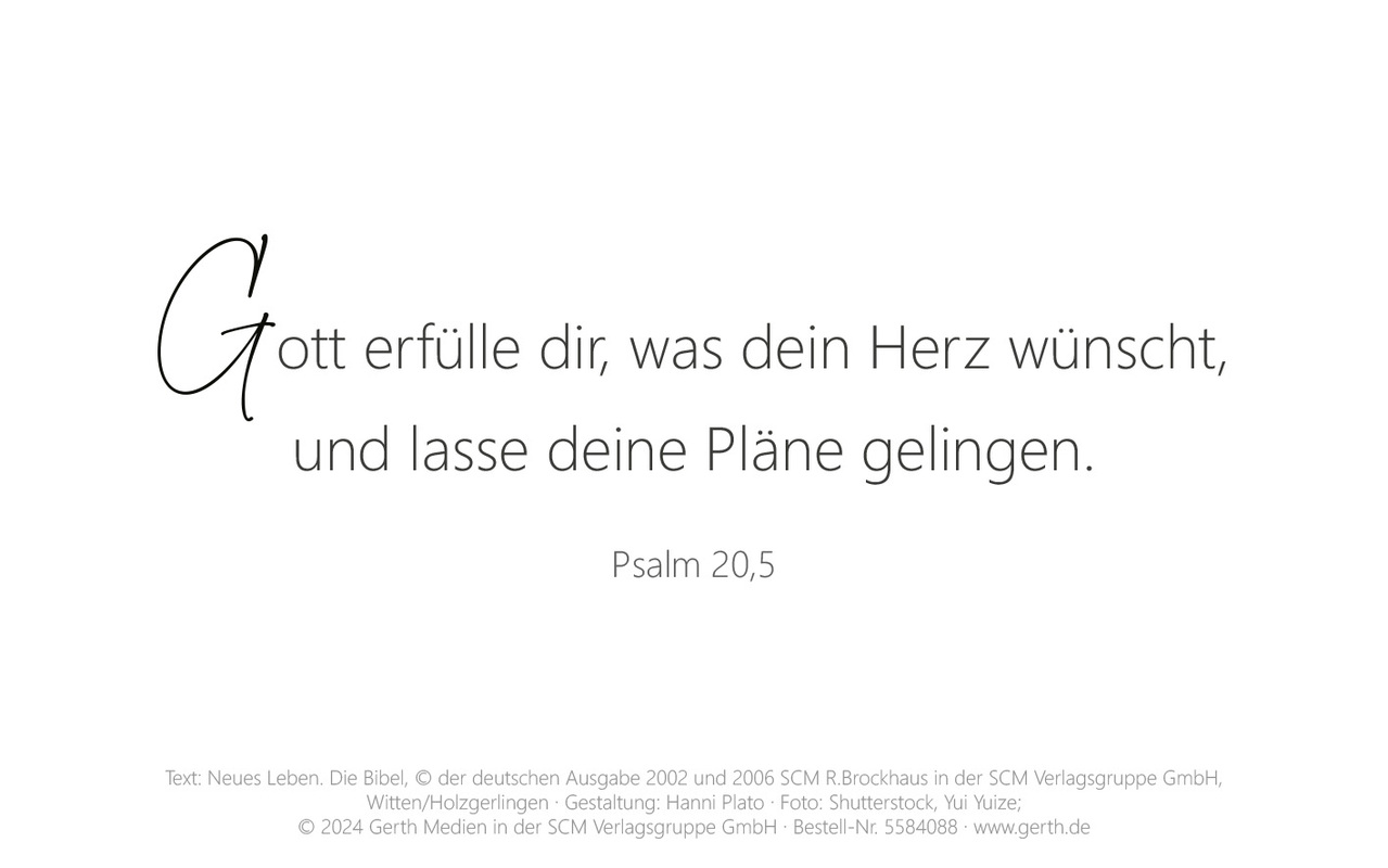 Die richtigen Worte zur richtigen Zeit sind Balsam für die Seele. Manchmal reicht ein Satz, um neuen Mut zu schenken oder den eigenen Blickwinkel zu ändern. Diese liebevoll gestalteten Textkärtchen enthalten ermutigende Bibelverse und bereiten dir mit den modernen Motiven und der wunderbaren Botschaft bei jedem Blick darauf Freude und spenden Hoffnung. Aber vor allem sind sie ein unvergessliches Geschenk für die Menschen, die dir am Herzen liegen!