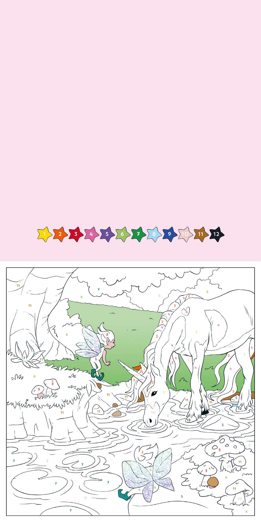 Das Malen-nach-Zahlen-Malbuch mit Glitzer verleiht den Einhörnern zusätzlichen Glanz und bringt die Augen von Einhorn-Fans garantiert zum Leuchten. Die Ausmalbilder sind nach dem bewährten Malen-nach-Zahlen-Prinzip gestaltet: kleine Zahlen von 1 bis 12 geben vor, mit welcher Farbe die Flächen im Bild ausgemalt werden. Die funkelnden Details machen das Malen dabei zu einem magischen Erlebnis - tolle farbige Motive garantiert!