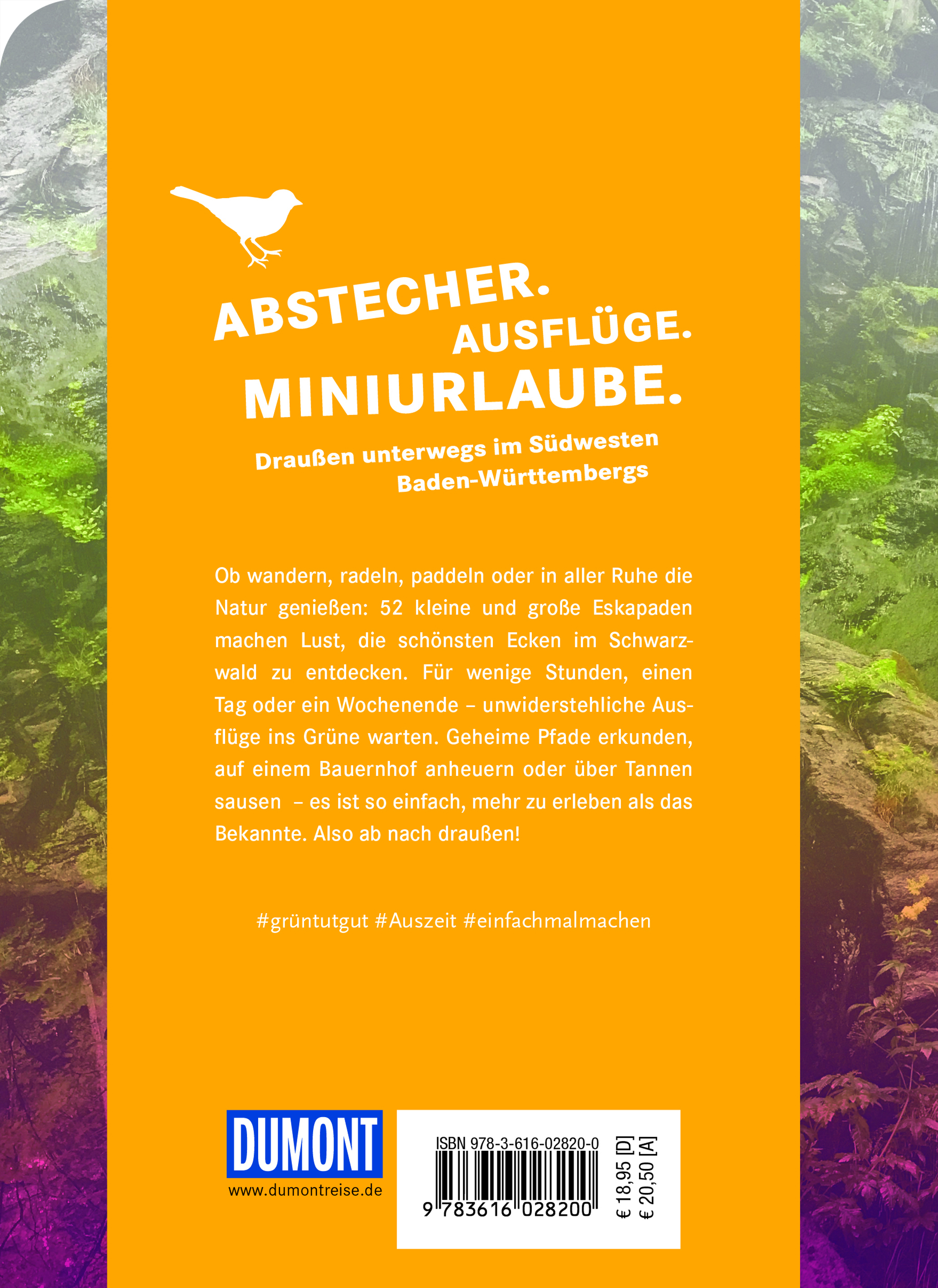 Ob wandern, radeln, paddeln oder in aller Ruhe die Natur genießen: 52 kleine und große Eskapaden machen Lust, die schönsten Ecken im Schwarzwald zu entdecken. Für wenige Stunden, einen Tag oder ein Wochenende - unwiderstehliche Ausflüge ins Grüne warten. Geheime Pfade erkunden, auf einem Bauernhof anheuern oder über Tannen sausen - es ist so einfach, mehr zu erleben als das Bekannte. Also ab nach draußen!