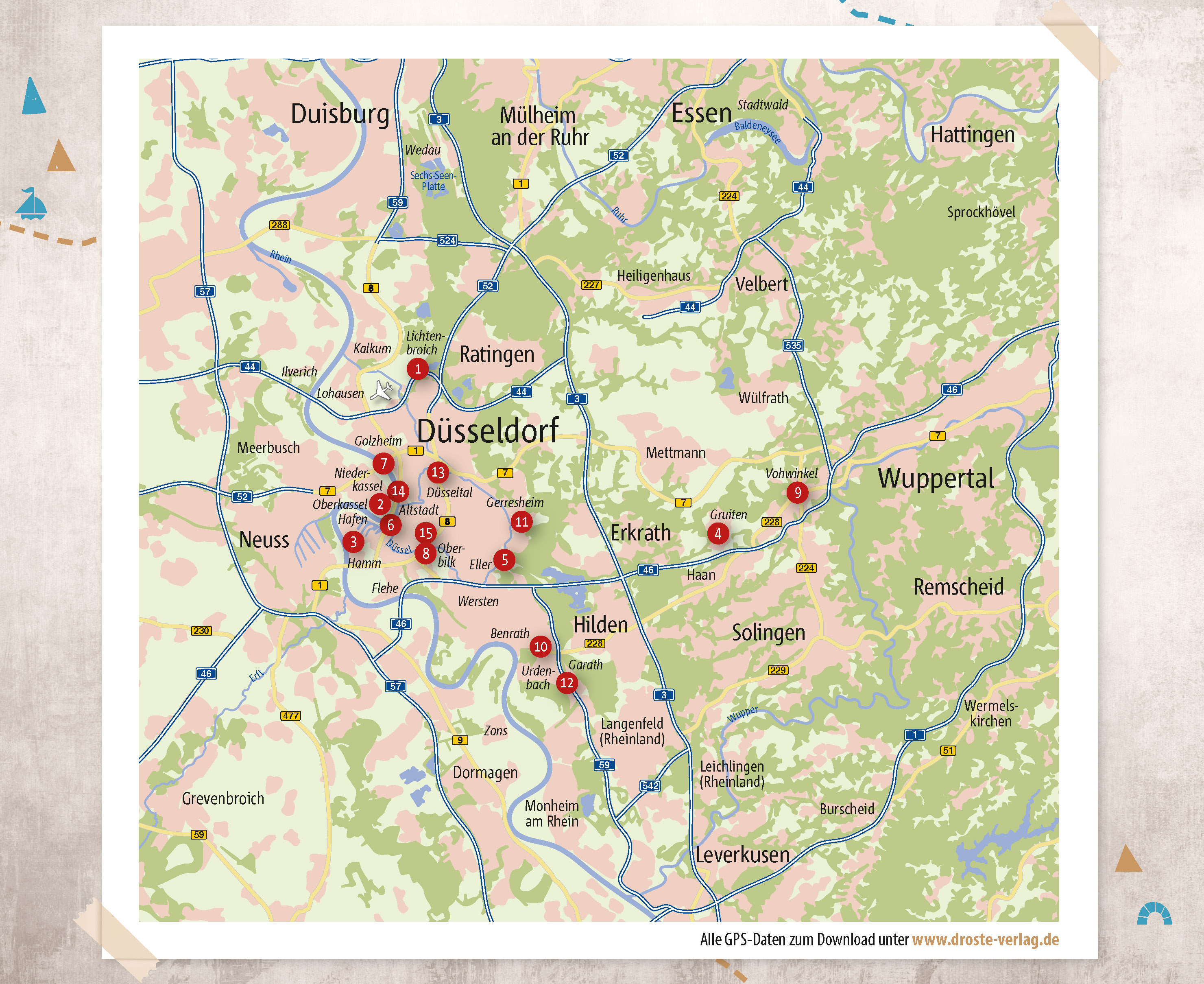 Durch das romantische Neandertal mit seinen Fachwerkhäusern, am Rhein entlang zu spannenden Museen, über weite Felder des Niederrheins bis in den liebevoll gepflegten Schlosspark Benrath – das ist Naherholung pur in Düsseldorf! Vorbei an Wiesen, Mooren und Wäldern geht es in die schillernde Metropole mit ihren Cafés und rheinischer Lebenslust. Und manchmal lernt man auch die versteckte Namensgeberin Düssel kennen. Jede dieser 15 Radtouren ist ein Miniurlaub für die Seele.