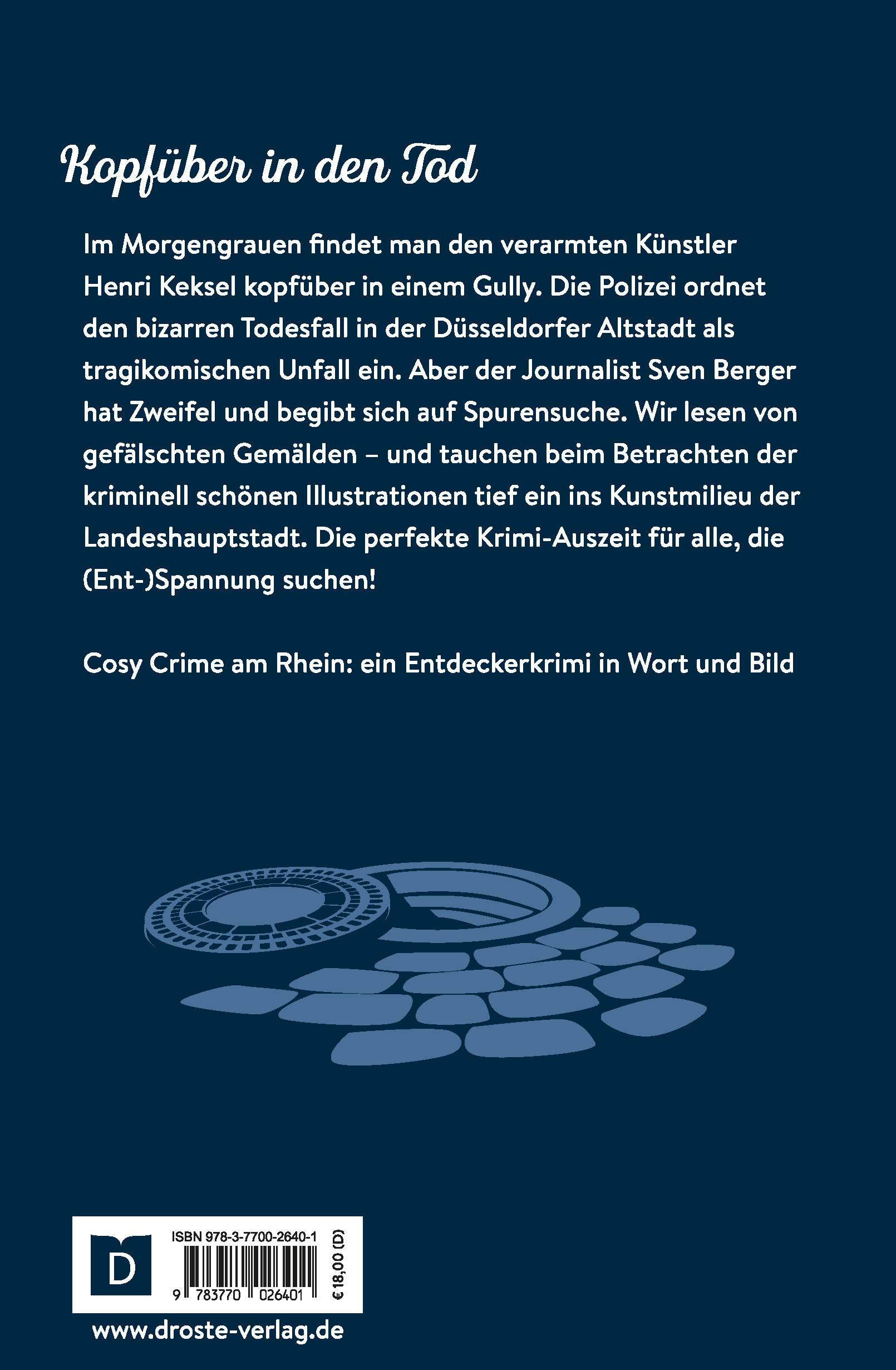 Im Morgengrauen findet man den verarmten Künstler Henri Keksel kopfüber in einem Gully. Die Polizei ordnet den bizarren Todesfall in der Düsseldorfer Altstadt als tragikomischen Unfall ein. Aber der Journalist Sven Berger hat Zweifel und begibt sich auf Spurensuche. Wir lesen von gefälschten Gemälden - und tauchen beim Betrachten der kriminell schönen Illustrationen tief ein ins Kunstmilieu der Landeshauptstadt. Die perfekte Krimi-Auszeit für alle, die (Ent-)Spannung suchen!