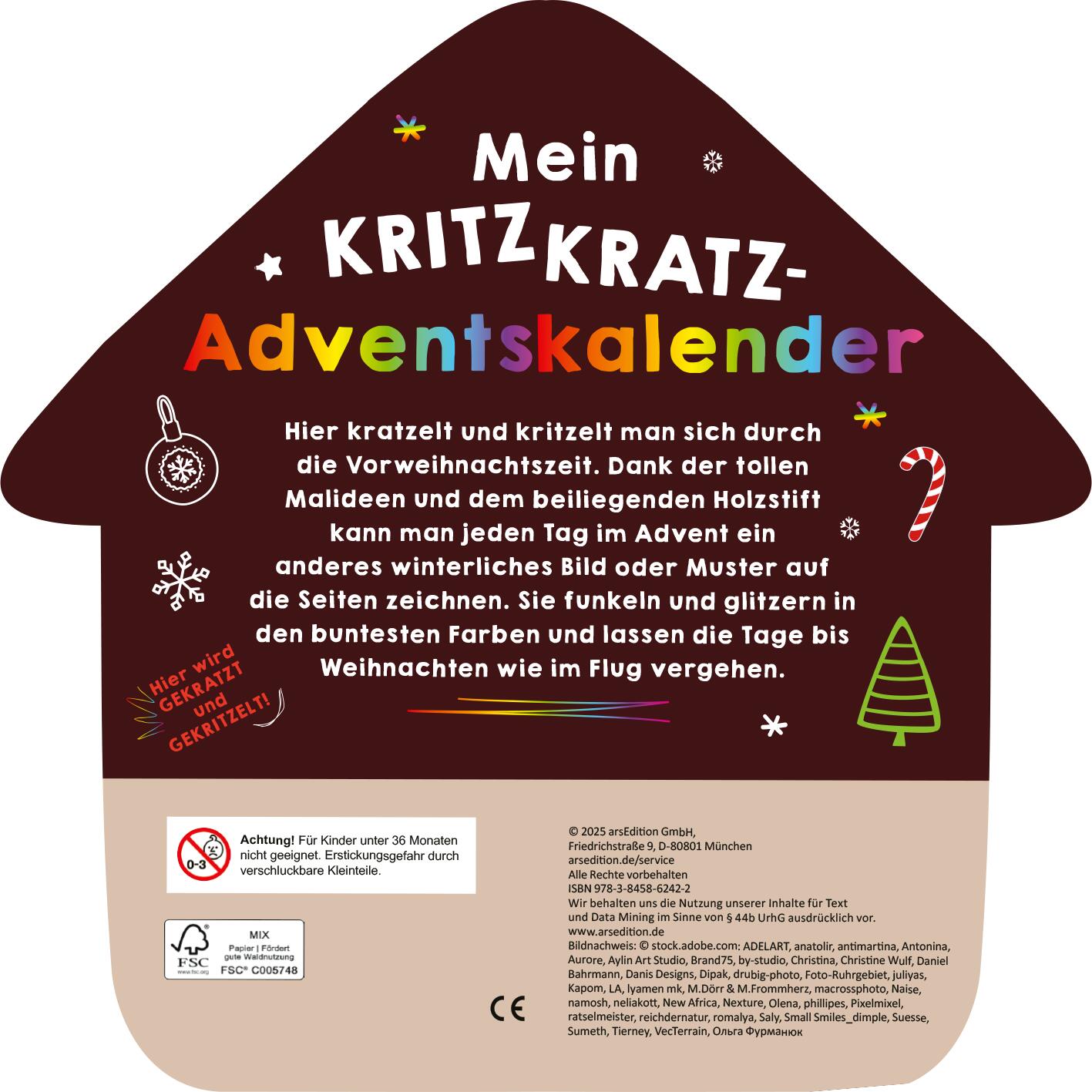 | Schlagworte | Advent Kinderbeschäftigung • Adventskalender • Advent und Weihnachten • Bastelbuch • Begleiter Adventszeit • Beschäftigung 5 Jahre • Beschäftigung auf Reisen • Christmas • Cool • Doodle • Feinmotorik • formgestanzt • Fun • Geschenkidee • Glow • Grundschule • Holzstifte • Kids • Kinderbuch • Kindergarten • Kratzbild • Kratzbilder • kratzbilder für kinder • Kratzbuch • Kratzen • Kratzseiten mit Holzstift • Kreativ • Kreative Beschäftigung • Kritzelbuch • Kritzel Kratzel Buch • kritzel mitmachbuch • Kritzeln • kritzkratz buch • Malblock Kinder • Mitmachbuch • Mitmach-Kalender ab 5 Jahren • Nikolaus • regenbogenfarben • Santa • Weihnachtsmann • Wow • Xmas • Zuhause |