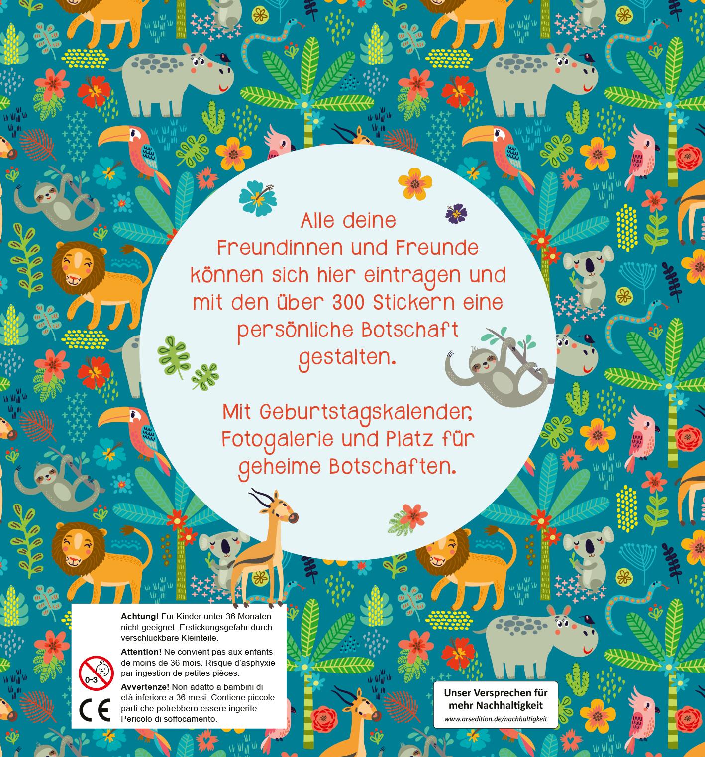 | Schlagworte | Dschungel • Einschulungsgeschenk • Erinnerungsalbum • Freundebuch • Freundschaftsbuch • Geschenk • Grundschule • Junge • Jungs • Kindergarten • Kindergartenfreunde • Kindergartenfreundebuch • Kindergarten-Freundebuch • Kita • Mädchen • meine ersten Freunde • neutral • Poesiealbum • Schule • Schulfreundebuch • Schultüte • Sticker • Stickeralbum • Stickern • Urwald • Wilde Tiere |