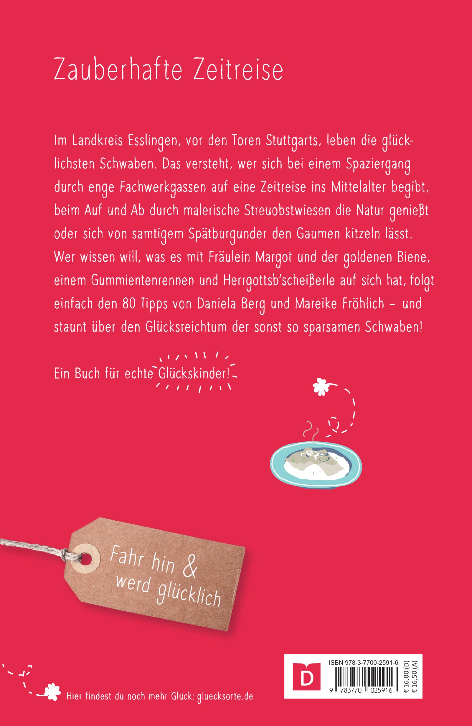 Im Landkreis Esslingen, vor den Toren Stuttgarts, leben die glücklichsten Schwaben. Das versteht, wer sich bei einem Spaziergang durch enge Fachwerkgassen auf eine Zeitreise ins Mittelalter begibt, beim Auf und Ab durch malerische Streuobstwiesen die Natur genießt oder sich von samtigem Spätburgunder den Gaumen kitzeln lässt. Die Autorinnen führen zu 80 Orten, an denen es Wein und Herrgottsbscheißerle, Kunst und Kultur gibt - und zeigen den Glücksreichtum der sonst so sparsamen Schwaben!