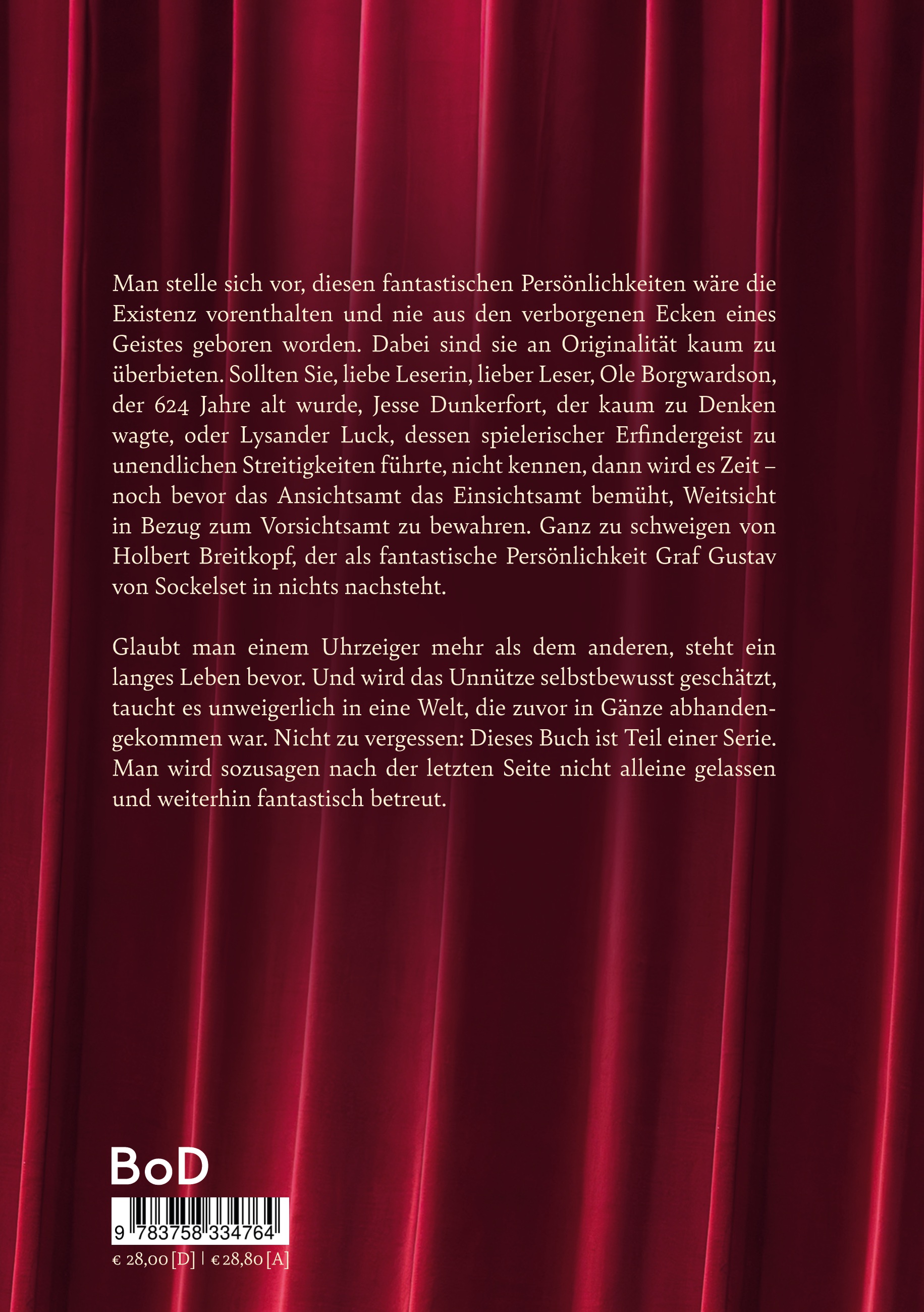 Glaubt man einem Uhrzeiger mehr als dem anderen, steht ein langes Leben bevor. Und wird das Unnütze selbstbewusst geschätzt, taucht es unweigerlich in eine Welt, die zuvor in Gänze abhandengekommen war. Nicht zu vergessen: Dieses Buch ist Teil einer Serie. Man wird sozusagen nach der letzten Seite nicht alleine gelassen und weiterhin fantastisch betreut.