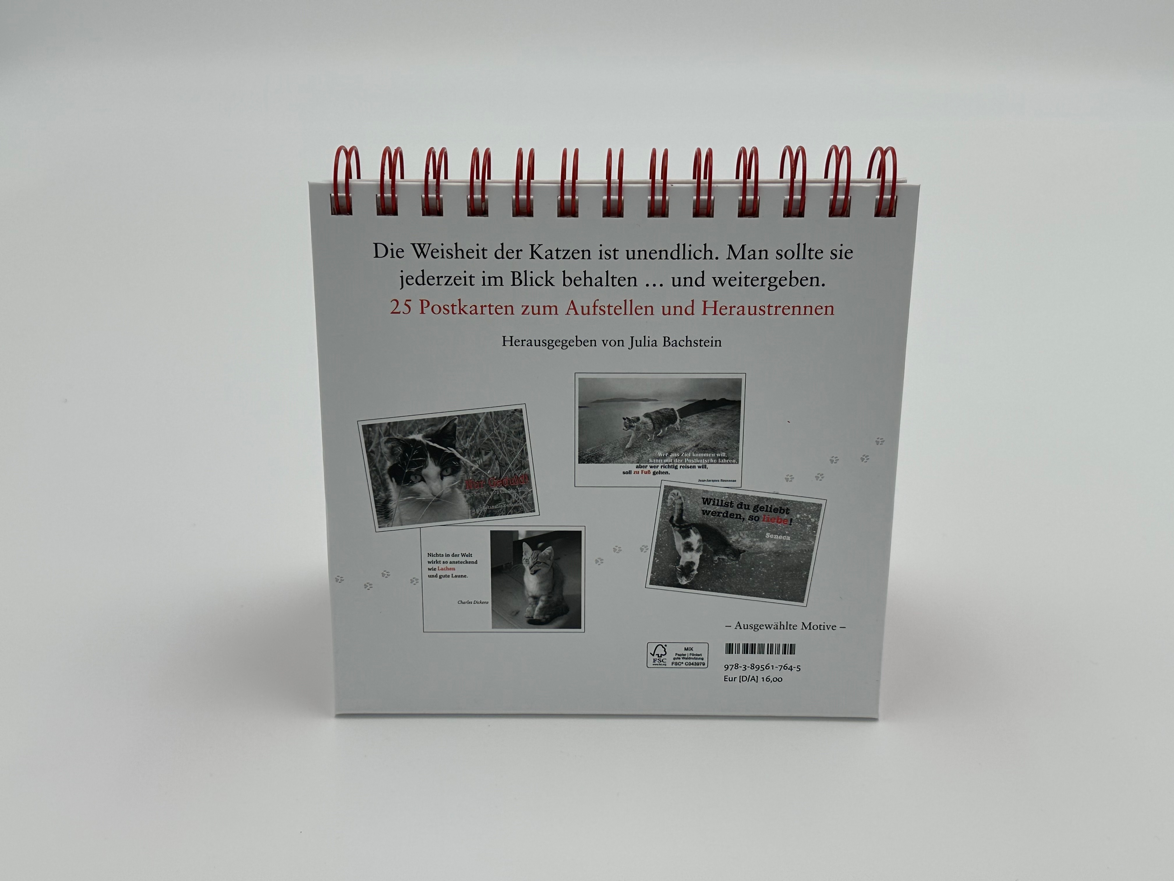| Schlagworte | Aufsteller • Dekoration • Geschenk • Geschenkidee • Katzen • Katzenkalender • Katzenpostkarten • Postkarten • Postkartenbuch • Postkartenset • Spiralaufsteller • Weisheiten |