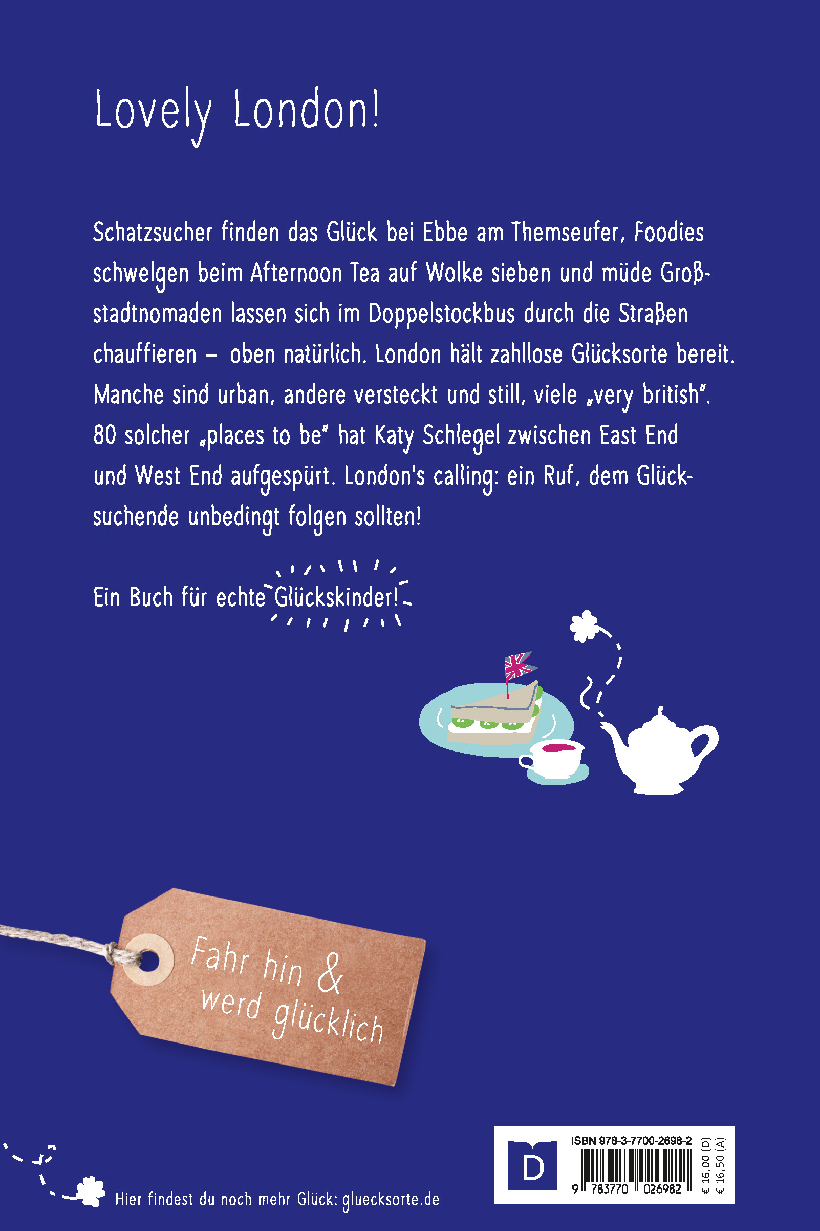 Schatzsucher finden das Glück bei Ebbe am Themseufer, Foodies schwelgen beim Afternoon Tea auf Wolke Sieben und müde Großstadtnomaden lassen sich im Doppelstockbus durch die Stadt zu chauffieren - oben natürlich. London hält zahllose Glücksorte bereit. Manche sind urban, andere sind versteckt und still, viele "very british". 80 solcher "places to be" hat Katy Schlegel zwischen East End und West End aufgespürt. London´s calling: ein Ruf, dem Glücksuchende unbedingt folgen sollten!