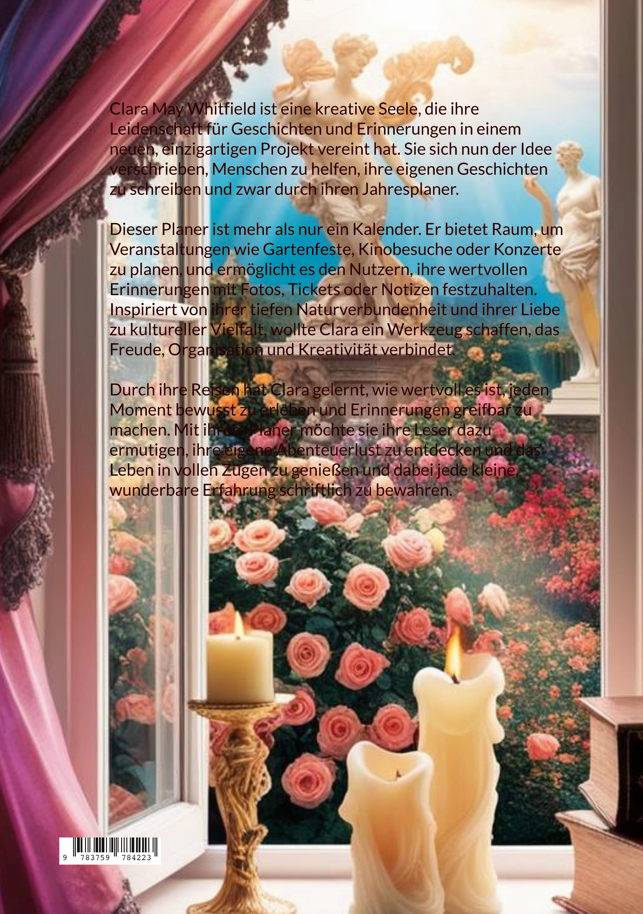 Clara May Whitfield ist eine kreative Seele, die ihre Leidenschaft für Geschichten und Erinnerungen in einem neuen, einzigartigen Projekt vereint hat. Sie sich nun der Idee verschrieben, Menschen zu helfen, ihre eigenen Geschichten zu schreiben und zwar durch ihren Jahresplaner.