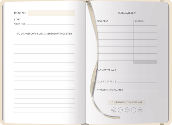 Reisetagebuch 13 x 19 cm zum Ankreuzen und Ausfüllen mit Lesebändchen und Gummiband, 160 Seiten SchreibLiebe