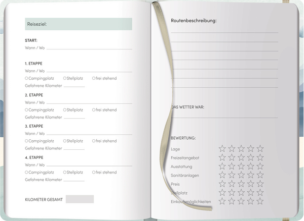 | Schlagworte | Ausflüge • Auszeit • Begleiter • Bulli • Caravan • Erholung • Erinnerungen • Ferien • Geschenkbuch • Geschenkidee • Logbuch • Natur • Radfahrer • Radtouren • Reisen • Reisetagebuch • Tagebuch |