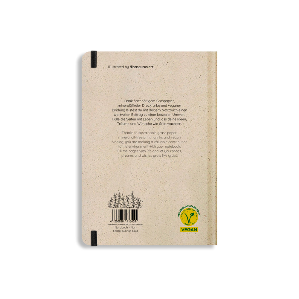 matabooks – Nachhaltiges A5 Notizbuch/Tagebuch/Bullet Journal/Schreibheft/Notebook aus Süßgraspapier – Nari Farbe: Sunrise Gold (punktiert)