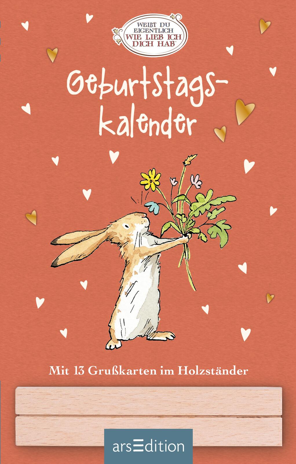 Weißt du eigentlich, wie lieb ich dich hab? Geburtstagskalender im Holzständer