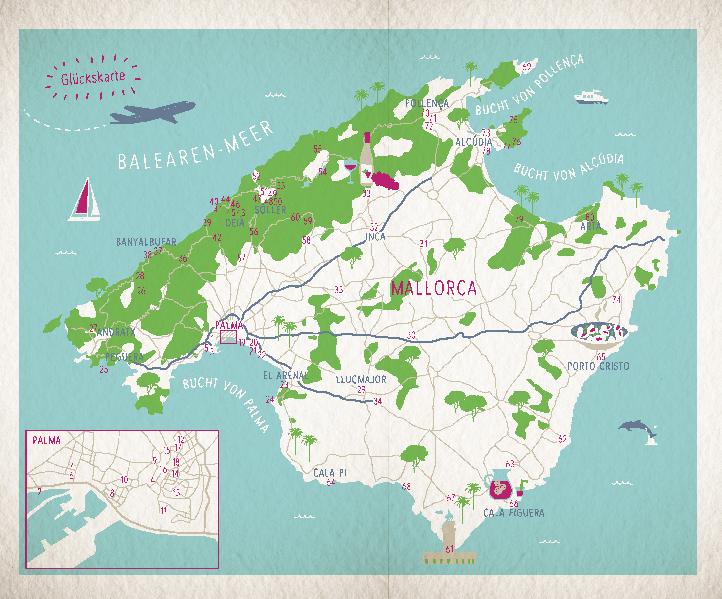 Die Sonne auf der Haut, die Füße im Sand, das Meer vor Augen und die Berge im Rücken: Auf Mallorca finden Sonnenanbeter und Kulturliebhaber, Genussfreunde und Ruhesuchende, Radfahrer und Wanderer ihre ganz persönlichen Glücksmomente. Wir stellen 80 Orte zwischen Meeresrauschen, Mandelblüte und maurischem Erbe vor, manche bekannter, andere echte Geheimtipps. Gemein ist ihnen, dass sie uns überraschen, inspirieren, entspannen und - vor allem - glücklich machen!